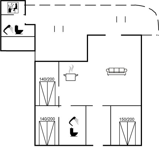 Der er i alt 3 soveværelser. Sovepladserne fordeler sig på: 6 sovepladser i dobbeltsenge. Derudover er der 1 stk. barneseng.