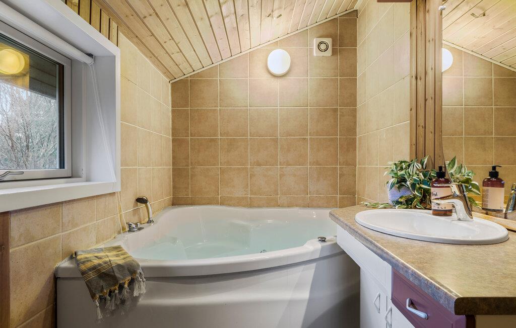 Rummeligt træsommerhus med spa og sauna