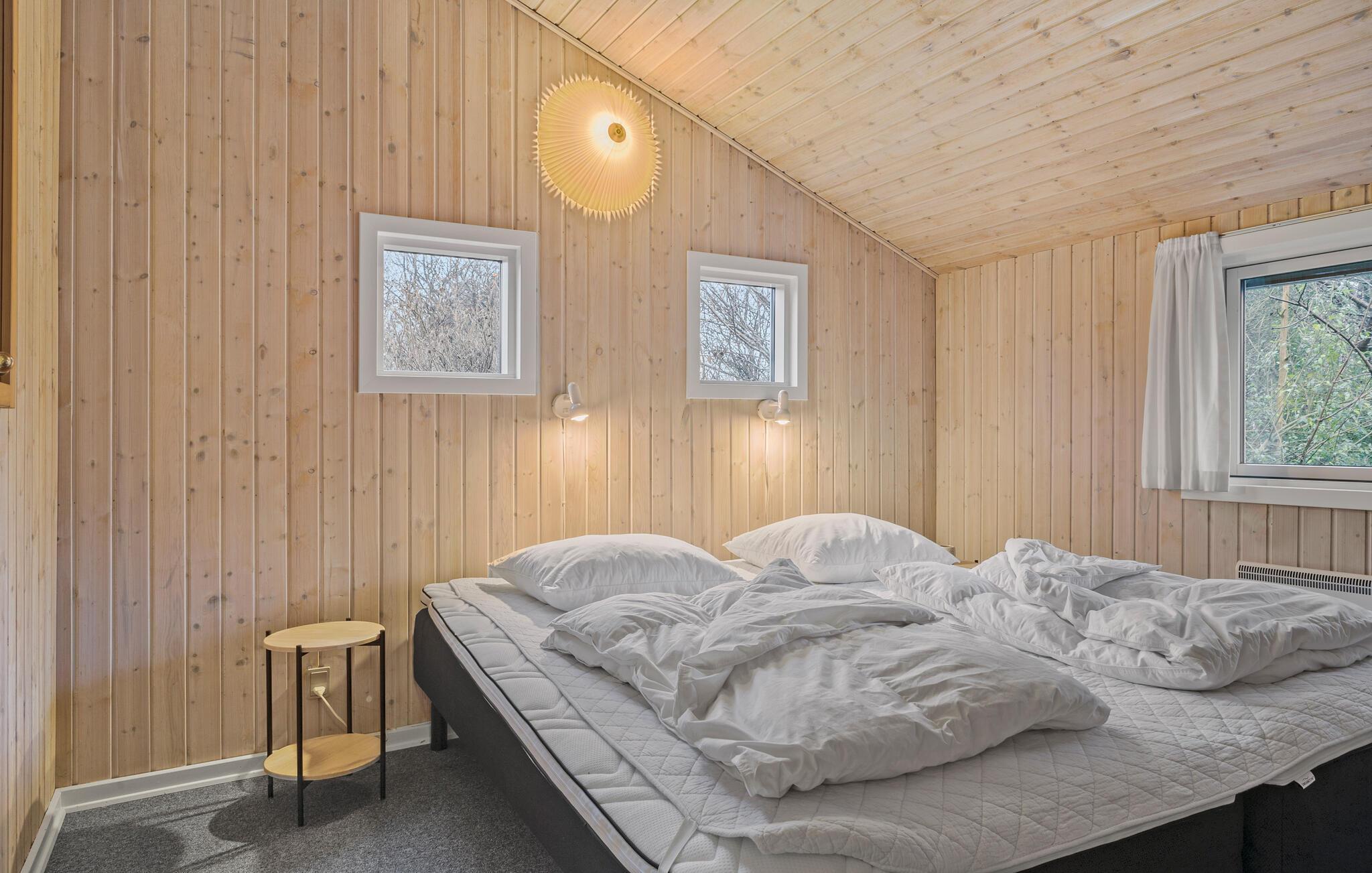 Rummeligt træsommerhus i Bolilmark med moderne komfort og ugenert terrasse nær Lakolk strand.