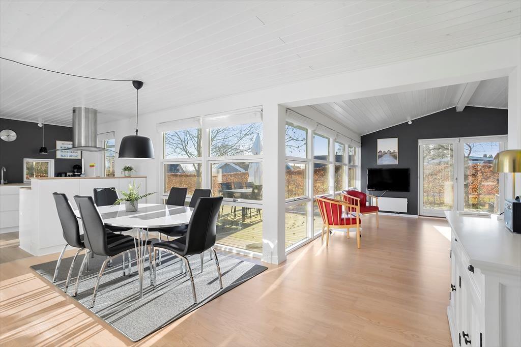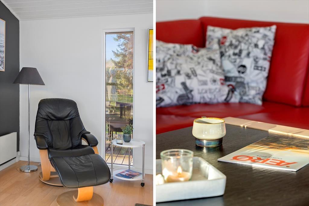 Indenfor bliver du mødt af en lys og venlig indretning, der straks får dig til at føle dig hjemme. Den store tv-stue er i åben forbindelse med både spisepladsen og det veludstyrede køkken, hvilket gør det nemt at være sammen, selvom der laves mad eller hygges foran fjernsynet. De store vinduer giver et fantastisk lysindfald, og det moderne møblement skaber en behagelig atmosfære. Efter en lang dag med oplevelser kan du glæde dig til at slappe af i saunaen og lade varmen omfavne dig, mens du kobler helt af.