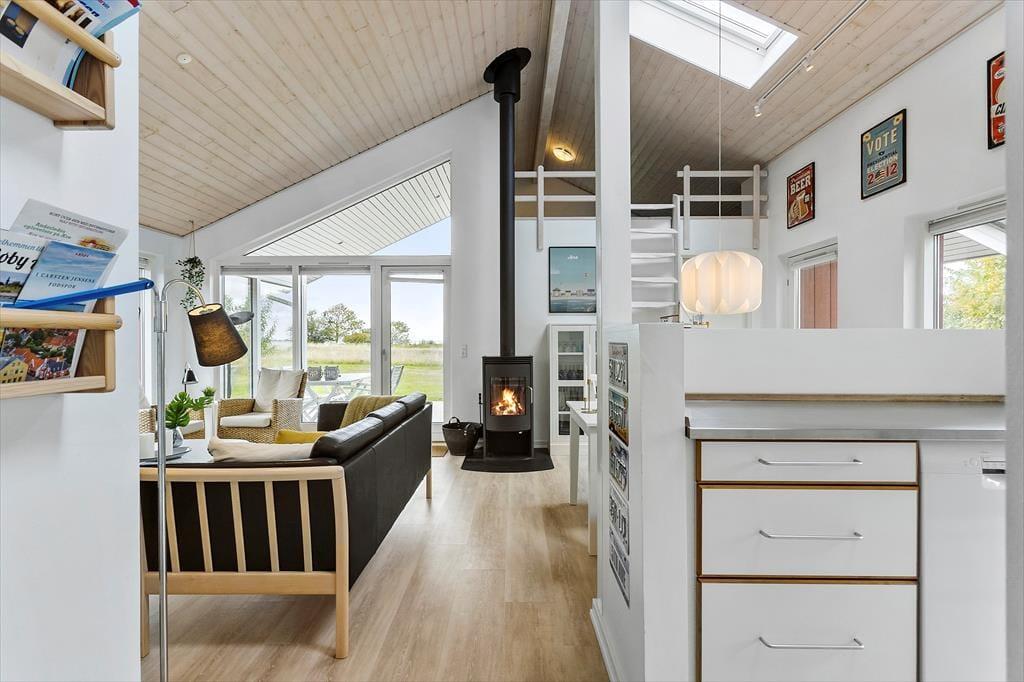 Indenfor i sommerhuset bliver du mødt af et stilfuldt og moderne køkken-alrum, hvor en central placeret brændeovn og varmepumpe sikrer en hyggelig og behagelig atmosfære, uanset vejret udenfor. Det åbne rum er perfekt til at samle familie og venner til måltider, samtaler og hyggelige aftener. Huset byder også på to lækre badeværelser, hvoraf det ene er udstyret med spabad og sauna – ideelt til at forkæle dig selv efter en lang dag med oplevelser. Hvert rum i huset er indrettet med øje for komfort og æstetik, så du straks kan føle dig hjemme og nyde ferien i fulde drag.