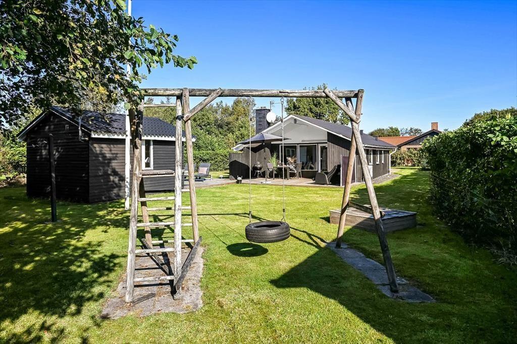 På grunden er der god plads til at parkere på grusbelægningen foran huset, mens baghaven er dedikeret til leg og afslapning. På græsplænen kan både børn og voksne spille bold og havespil, mens gyngestativet og sandkassen formentlig mest er til de yngste feriemedlemmer. Står der afslapning på programmet, er den sydvendte, delvist overdækkede terrasse et herligt sted at nyde solen det meste af dagen.