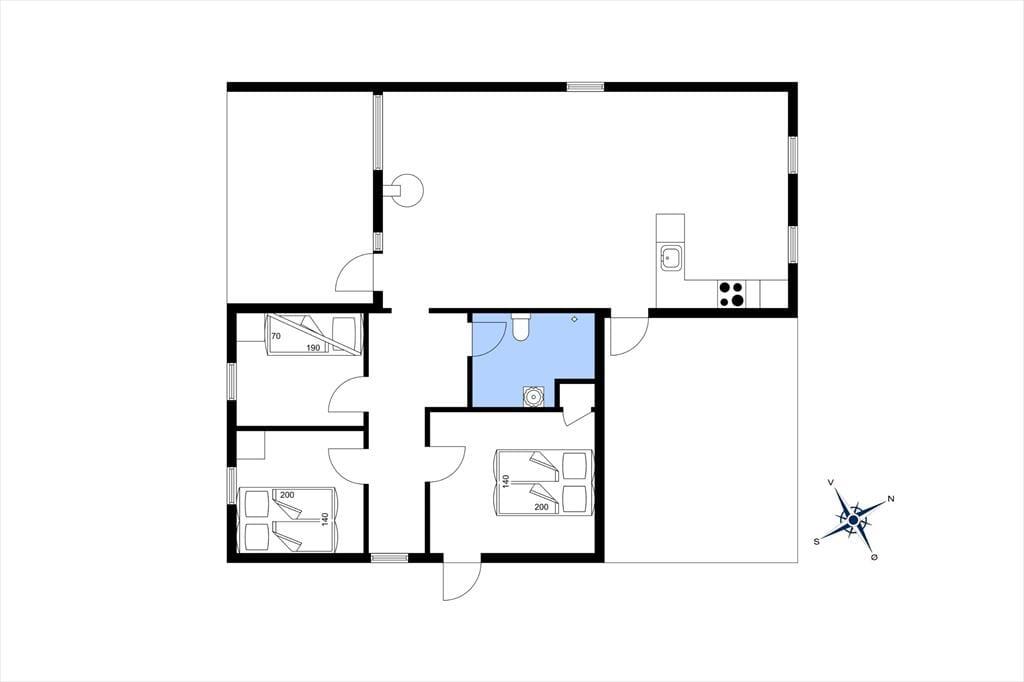 Holder I ferie på et tidspunkt af året, hvor I gerne vil tilbringe mange timer inden døre, vil sommerhusets stue fungere som det oplagte samlingspunkt både morgen, middag og aften. I kan starte med at servere dagens første kop kaffe ved spisekrogen i det åbne køkken – og her kan I egentlig sagtens blive siddende for at spille brætspil, tegne og lave andre hyggelige fællesaktiviteter. Vil I sidde lidt mere komfortabelt, kan I rykke hen i sofaafdelingen for at se film på TV’et, og vil I skrue ekstra op for den gode stemning, kan I tænde op i brændeovnen. Et badeværelse og tre soveværelser hører også med til planløsningen, og der er en barnestol til rådighed til småbørnsfamilier.