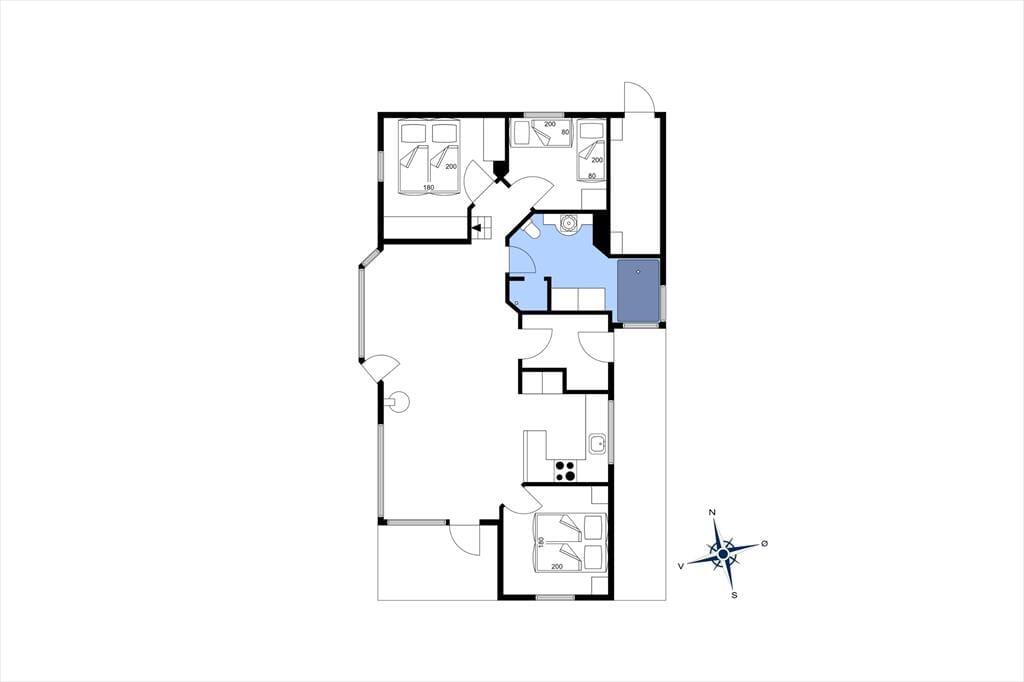 Sommerhuset er opført i 2014 og som man kan forvente af et moderne byggeri, er det lyst og indbydende inden døre. På klassisk sommerhusmanér er der brændeovn og en varmepumpe med aircondition. De store vinduespartier og den flotte loftshøjde bidrager til en behagelig atmosfære. Som en lækker detalje er der gulvvarme i hele huset. I det herlige opholdsrum er køkkenet integreret med stuen, så det er her, I kan hygge jer med madlavning, lækre måltider og efterfølgende sofaafslapning. For at gøre aftenen helt perfekt, kan I slutte af med et spabad på det flotte badeværelse, inden I går til ro på et af sommerhusets tre soveværelser.