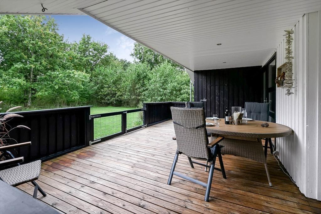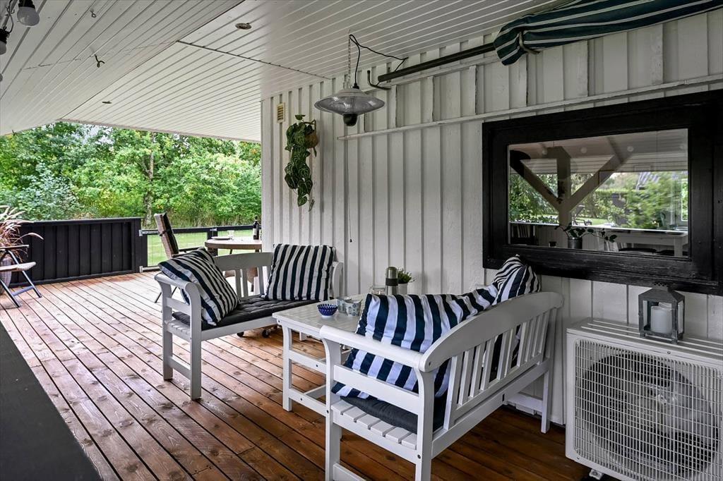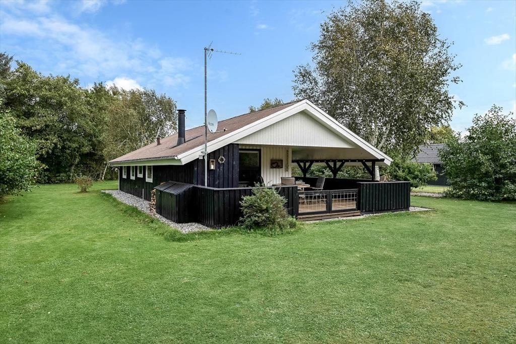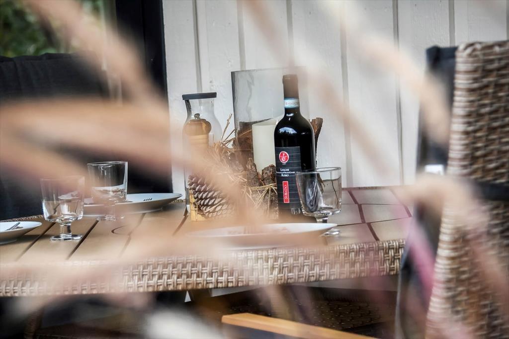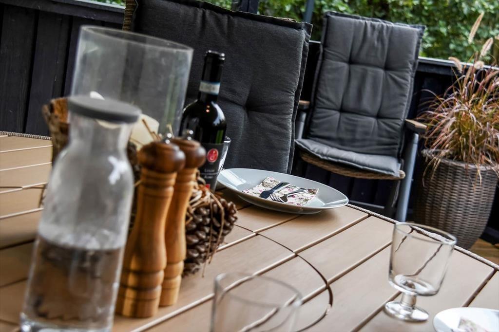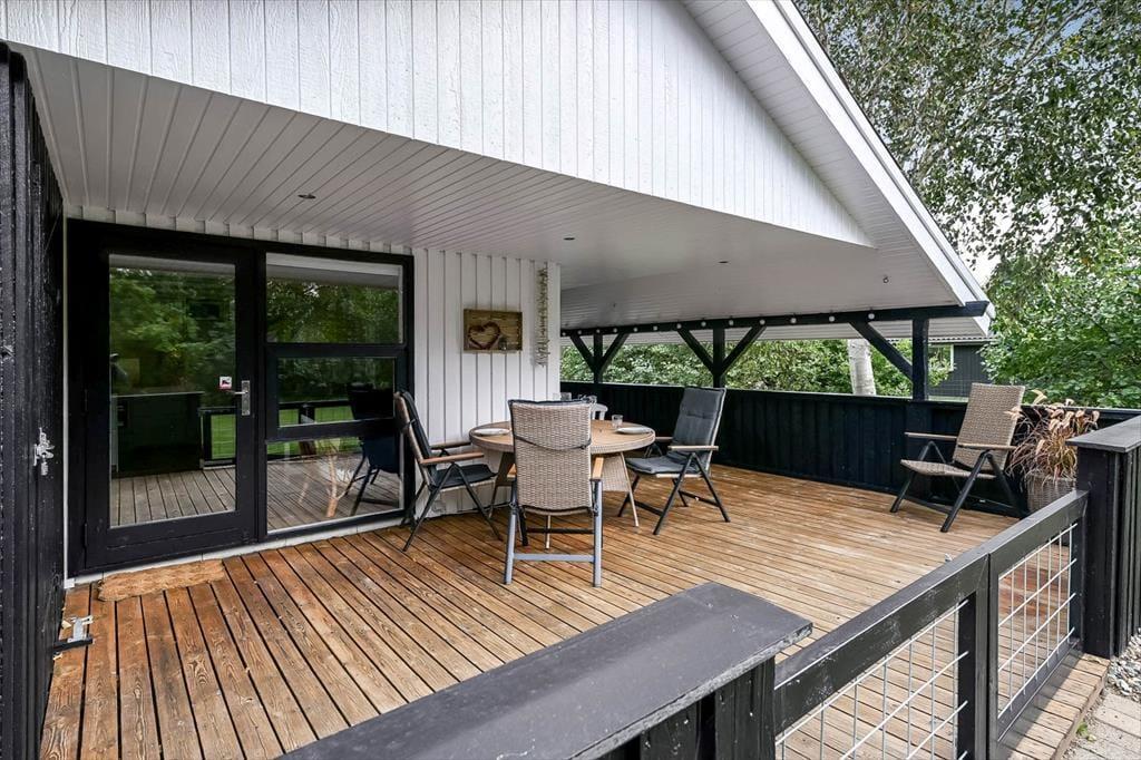 Vil I helst tilbringe ferietiden ude i det fri, er haven heldigvis skøn at opholde sig i. Den store, sydvendte terrasse er delvist overdækket, så her kan I vælge mellem sol og skygge, når I spiser frokost eller læner jer tilbage med en god bog. Huset omkranses af en stor, plan græsplæne, så der er god plads til at slå kolbøtter, løbe og spille bold, hvis en eller flere familiemedlemmer trænger til at komme op af havestolen.