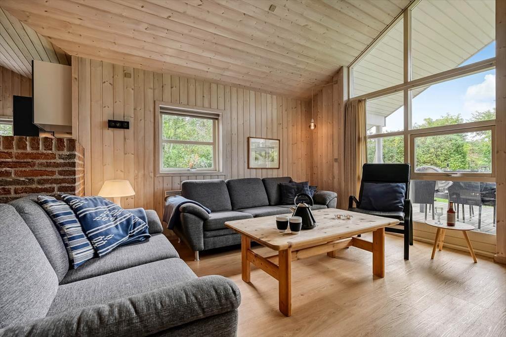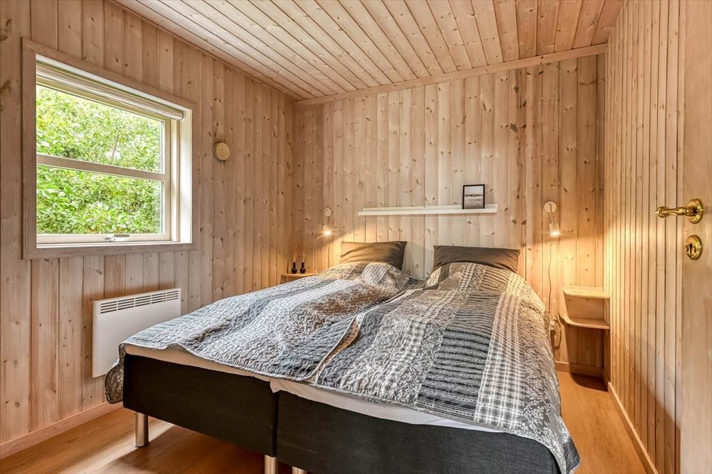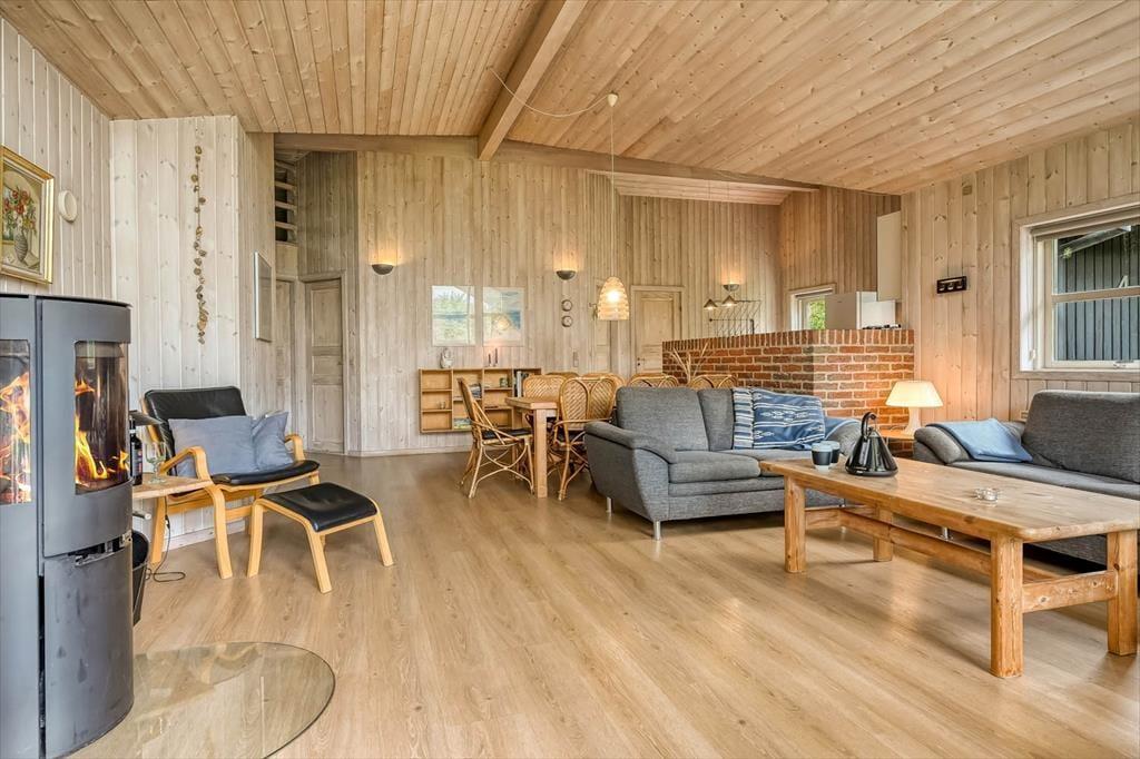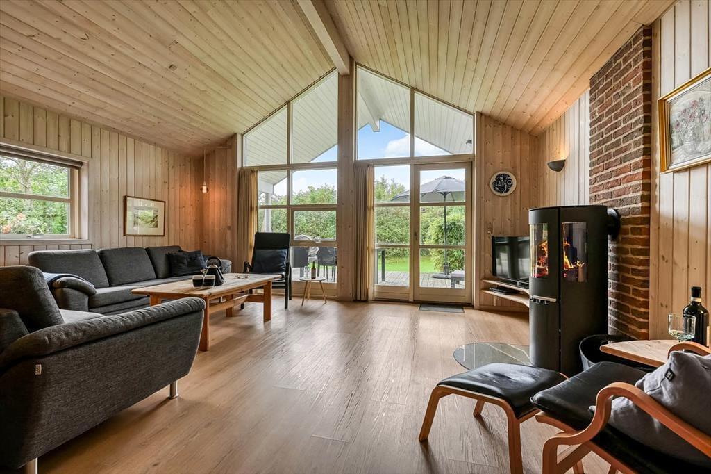 Lyst, pænt og velholdt – det er ord, der passende beskriver huset, som er opført i 1998 og senest renoveret i 2019. Væggenes træbeklædning, brændeovnen og loftet, der går helt til kip, er noget af det, der giver et klassisk og hyggeligt sommerhuspræg, mens det store sydvendte gavlvindue lukker ekstra meget lys ind i opholdsafdelingen. Her ligger stue og køkken i åben forbindelse, så I kan sagtens nyde familiesamværet, selvom der er gang i madlavning, brætspil og sofaafslapning på samme tid. Trænger I til en rolig stund, er det helt perfekt at tage en tilbagelænet pause i spabadet og saunaen, der begge er installeret på det største af husets to badeværelser. Og når klokken bliver mange, og I ikke har mere på ferieprogrammet, kan I se frem til en god nats søvn på de tre soveværelser og på hemsen, der er udstyret med ekstra madrasser.