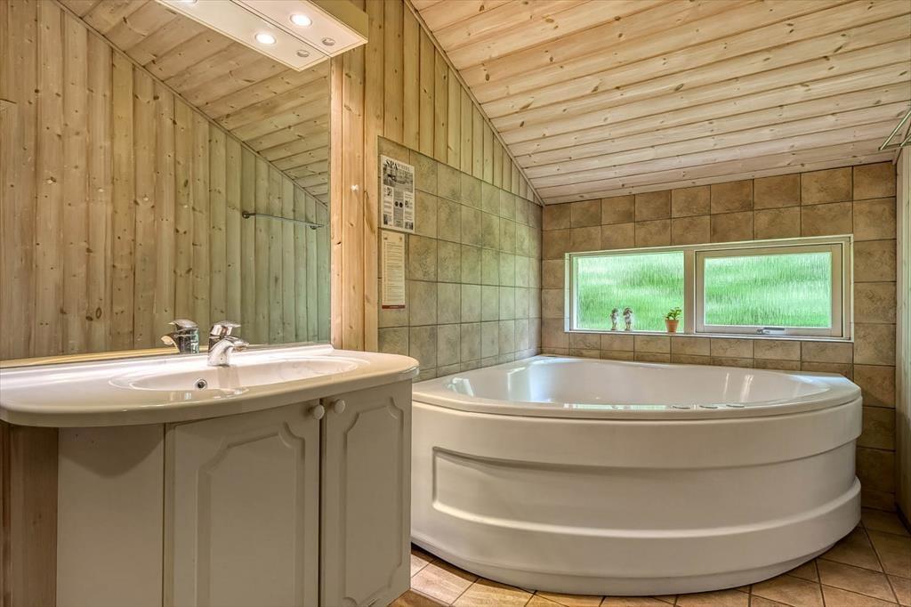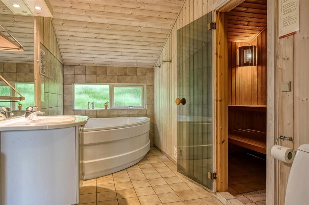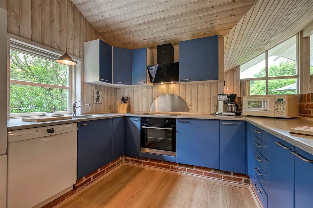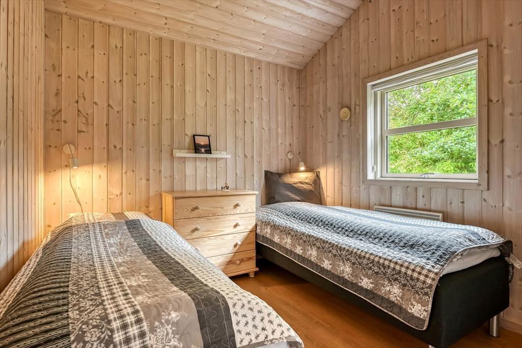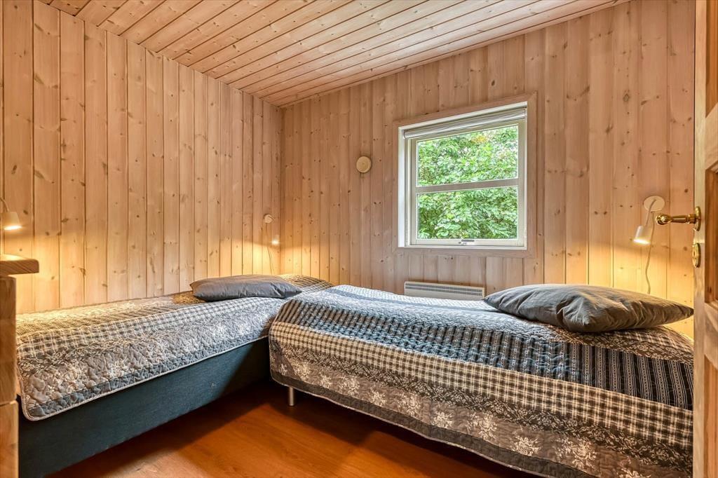 Lyst, pænt og velholdt – det er ord, der passende beskriver huset, som er opført i 1998 og senest renoveret i 2019. Væggenes træbeklædning, brændeovnen og loftet, der går helt til kip, er noget af det, der giver et klassisk og hyggeligt sommerhuspræg, mens det store sydvendte gavlvindue lukker ekstra meget lys ind i opholdsafdelingen. Her ligger stue og køkken i åben forbindelse, så I kan sagtens nyde familiesamværet, selvom der er gang i madlavning, brætspil og sofaafslapning på samme tid. Trænger I til en rolig stund, er det helt perfekt at tage en tilbagelænet pause i spabadet og saunaen, der begge er installeret på det største af husets to badeværelser. Og når klokken bliver mange, og I ikke har mere på ferieprogrammet, kan I se frem til en god nats søvn på de tre soveværelser og på hemsen, der er udstyret med ekstra madrasser.