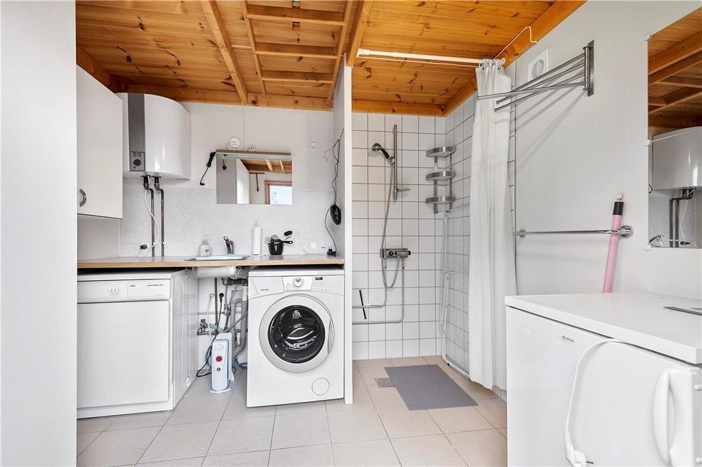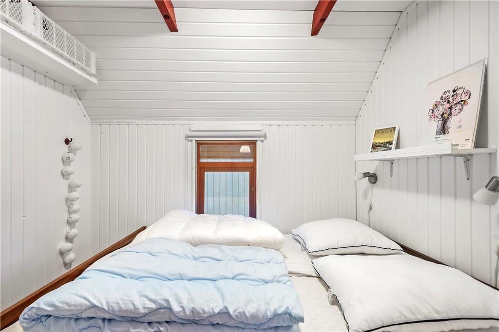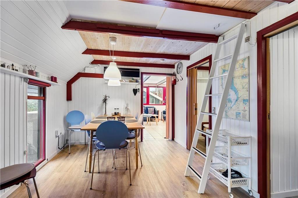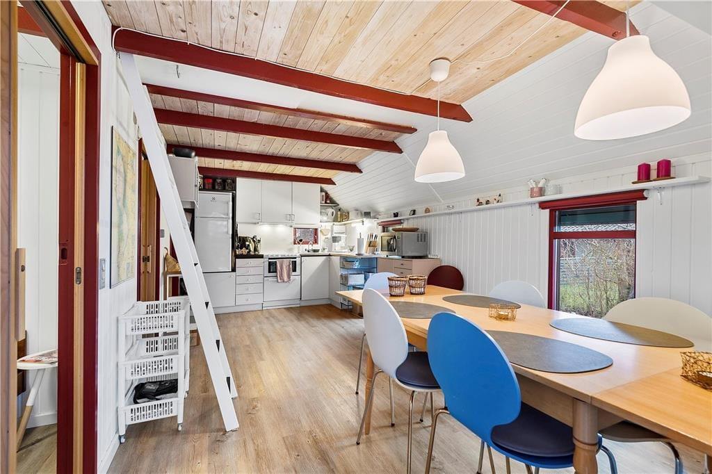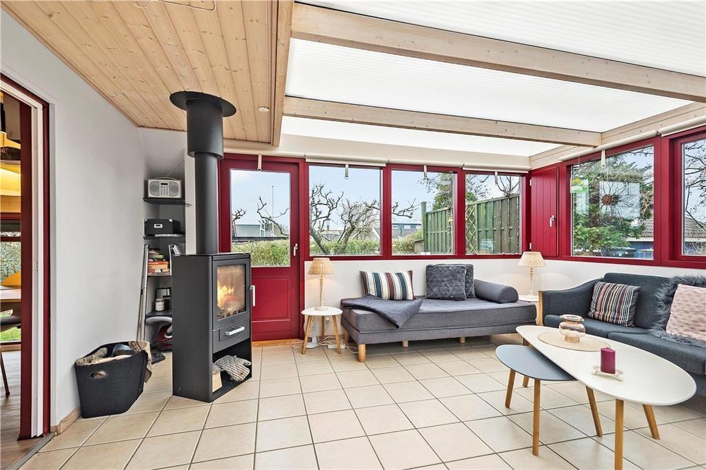 Sommerhuset er fuldt af god stemning, for det er sådan ét, der lægger op til hygge og afslapning med alt, hvad det tilhører af lækker mad, brætspil, gode bøger og dejligt familiesamvær. Hver eneste kvadratmeter inden døre i det lille hus er godt udnyttede, både på de to værelser og i opholdsafdelingen, der består af køkken-alrum og en dejlig udestue. I stuen er der brændeovn og flere sofaer, så der er god plads til at slænge sig, når I ser film på fladskærms-TV’et. Huset rummer endelig også et toilet med vinylgulv, mens annekset byder på et baderum med brusebad, vaskemaskine og tørretumbler.