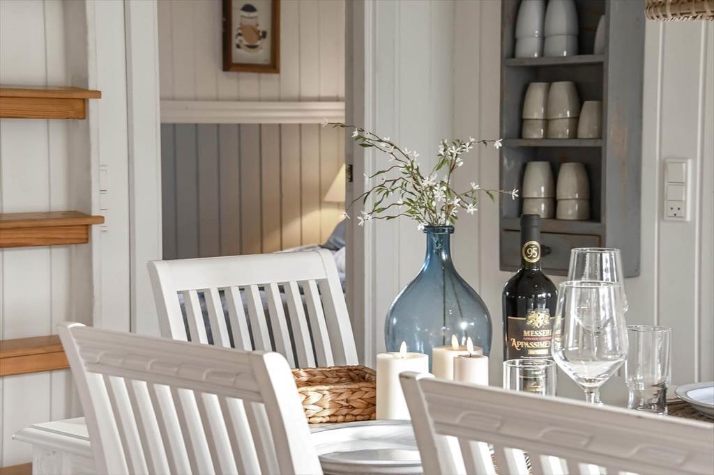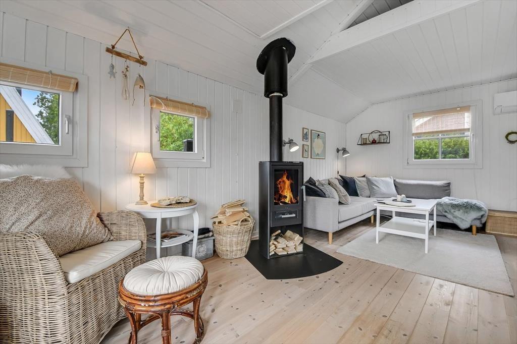 Træd indenfor i et lyst og indbydende sommerhus, hvor komfort og charme går hånd i hånd. Stuen er hjertet i huset med bløde sofaer, et knitrende brændeovn og store vinduer, der lader lyset strømme ind. Det åbne køkken er veludstyret og skaber en hyggelig ramme for madlavning og samvær. Her er plads til både ro og nærvær, uanset om dagen står på spil, en god bog eller bare ren afslapning.