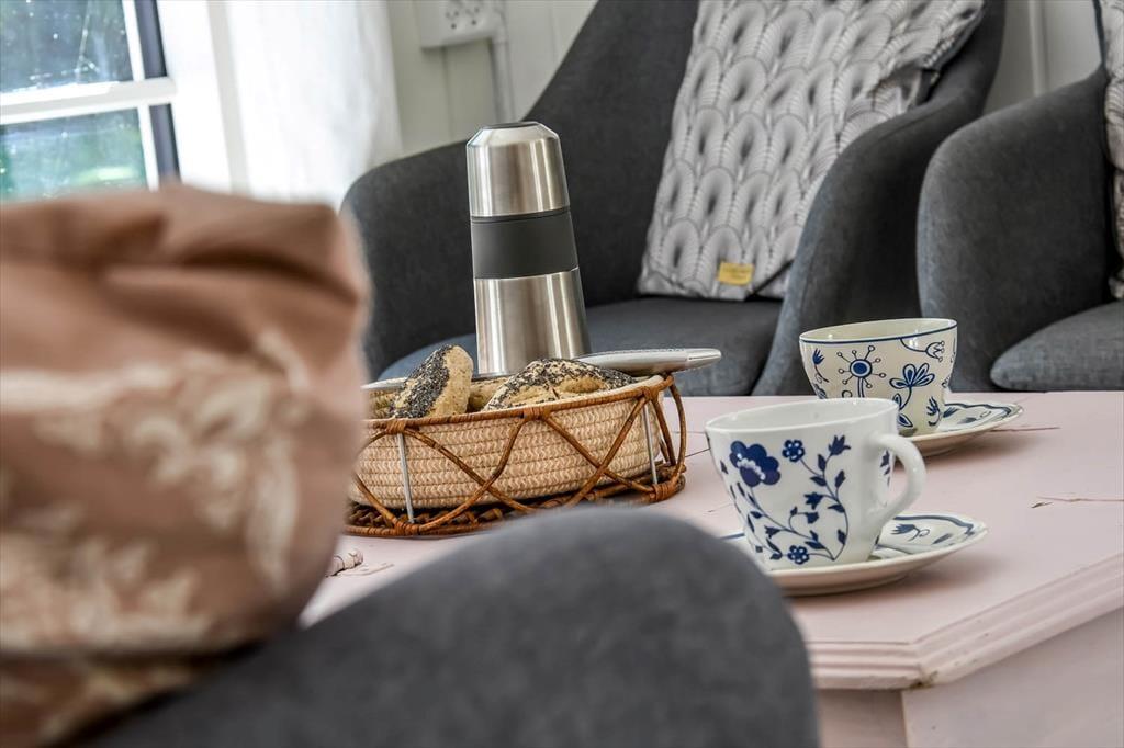 Træd ind i et lyst og imødekommende sommerhus, hvor fokus er på detaljerne og den gode atmosfære. Indretningen er enkel og gennemført, og du fornemmer straks, at her er tænkt over alt fra farvevalg til materialer. I stuen kan du nyde en rolig stund med en kop kaffe i sofaen, mens lyset falder ind gennem de store vinduer og kaster et blødt skær over rummene. Køkkenet ligger i åben forbindelse med opholdsrummet, så du kan følge snakken, mens du laver mad. Stemningen er hjemlig og afslappet, og det lille hus rummer alt, hvad du har brug for til en ferie, hvor roen og nærværet får lov at fylde.
