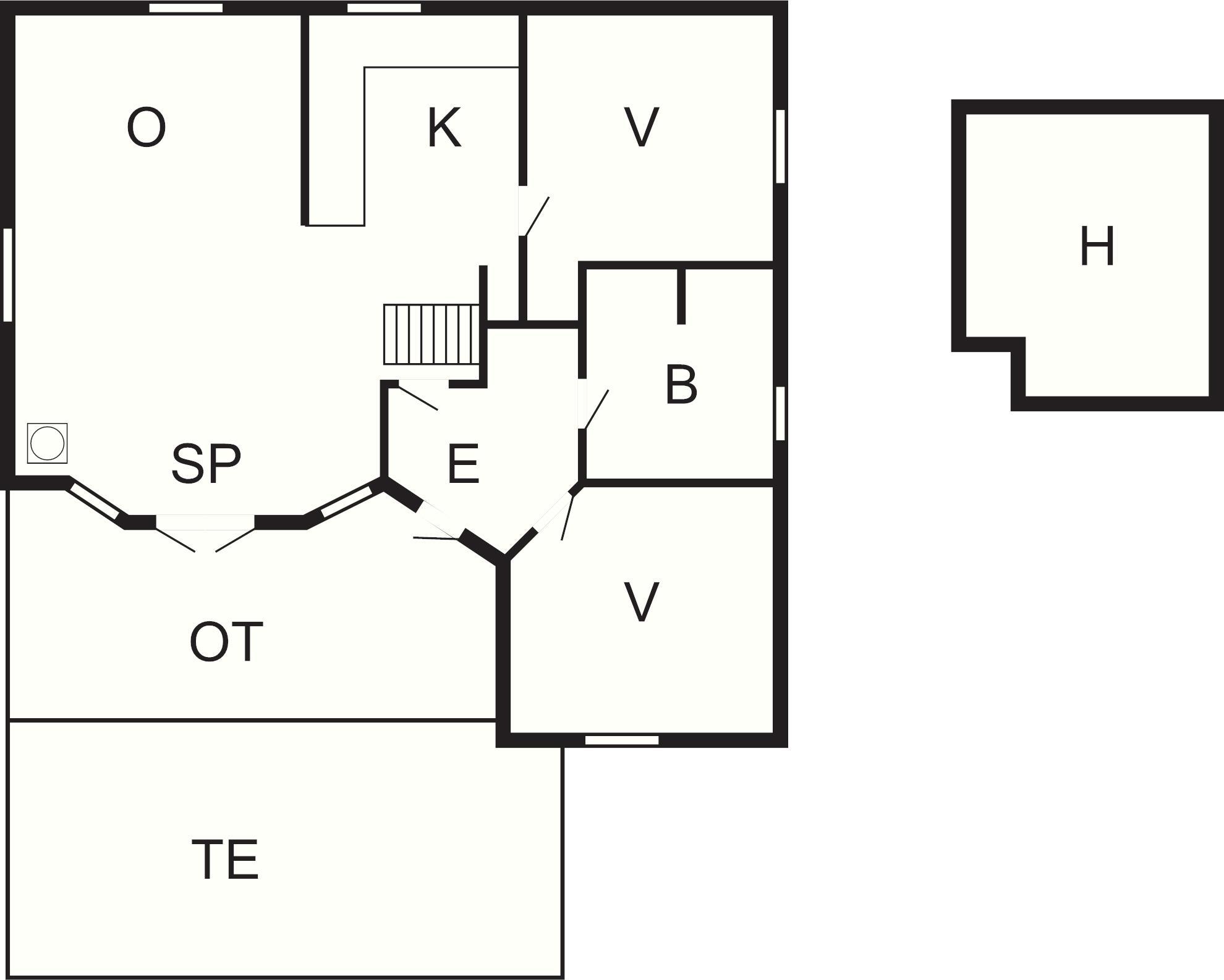 1 Opholdsstue: Brændeovn, tv, kabel-tv