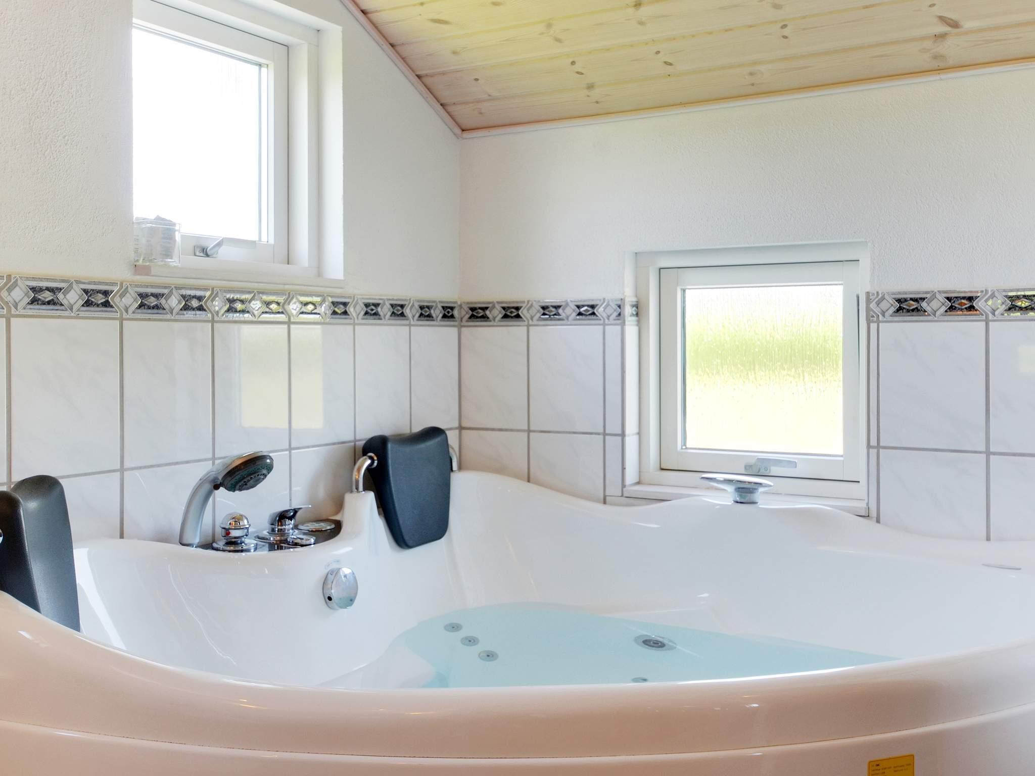 Dette sommerhus er kendetegnet ved sin gode planløsning, hvor hele huset er udnyttet. Huset er veludstyret og indrettet med moderne møbler. Efter en lang dag i naturen er der god plads i det 2-personers store spabad, som giver lindring til ømme muskler. Fra spabadet er der direkte adgang til husets sauna. Der er 2 badeværelser i huset. Til børnene er der gynge og sandkasse. Huset er bl.a. udstyret med centralstøvsuger, et unikt solopvarmingssystem og aircondition, som reducerer strømforbruget betragteligt. Der er farve-tv i alle værelser. Carporten kan benyttes som aktivitetsrum. Her kan I spille dart m.m. Huset ligger ca. 1100 m fra en af Danmarks bedste wind- og kitesurfing steder. Tilbring aftenen foran brændeovnen oven på en lang dag med mange aktiviteter og oplevelser. Der er carport til bilen. Afstand fra Vesterhavet ca. 15 min og Legoland ca. 45 min. I nærheden finder I en 18-hullers golfbane. Der er gode fiskemuligheder i området. Ønsker I at slippe for selv at skulle stå for rengøringen på jeres sidste feriedag, anbefaler vi, at I bestiller en afrejserengøring. Udlejes ikke til ungdomsgrupper.