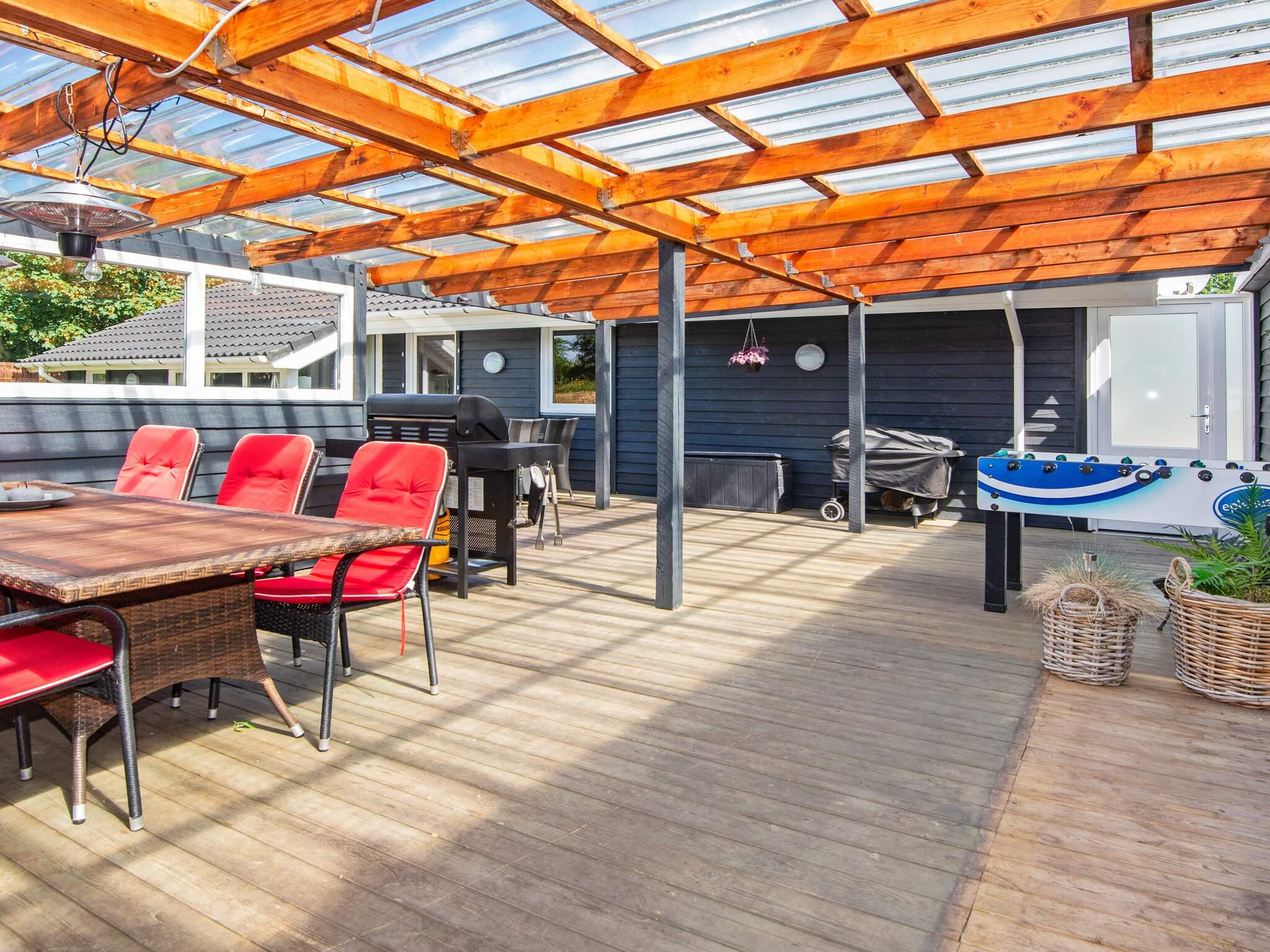 Udenfor er der direkte adgang til en rummelig træterrasse, delvist overdækket, fra stuen. Terrassen byder på masser af plads til at slappe af, nyde måltider eller blot nyde den friske luft, og du kan som regel finde et beskyttet opholdsområde til at nyde fredelige stunder. Med sin gennemtænkte indretning, wellness-faciliteter og nærhed til fjorden er dette feriehus ideelt for familier eller grupper, der søger både afslapning og aktivitet. Bemærk venligst, at udlejning til ungdomsgrupper ikke er tilladt.