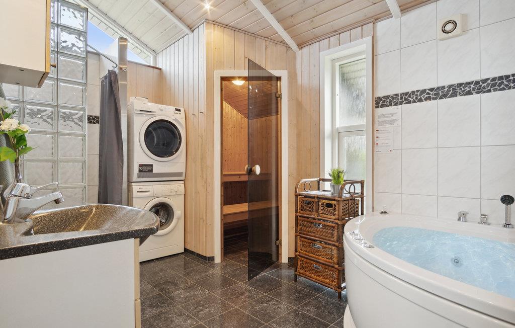 Flot feriehus ved Bork Havn med sauna, spabad, brændeovn og stor terrasse i roligt område.