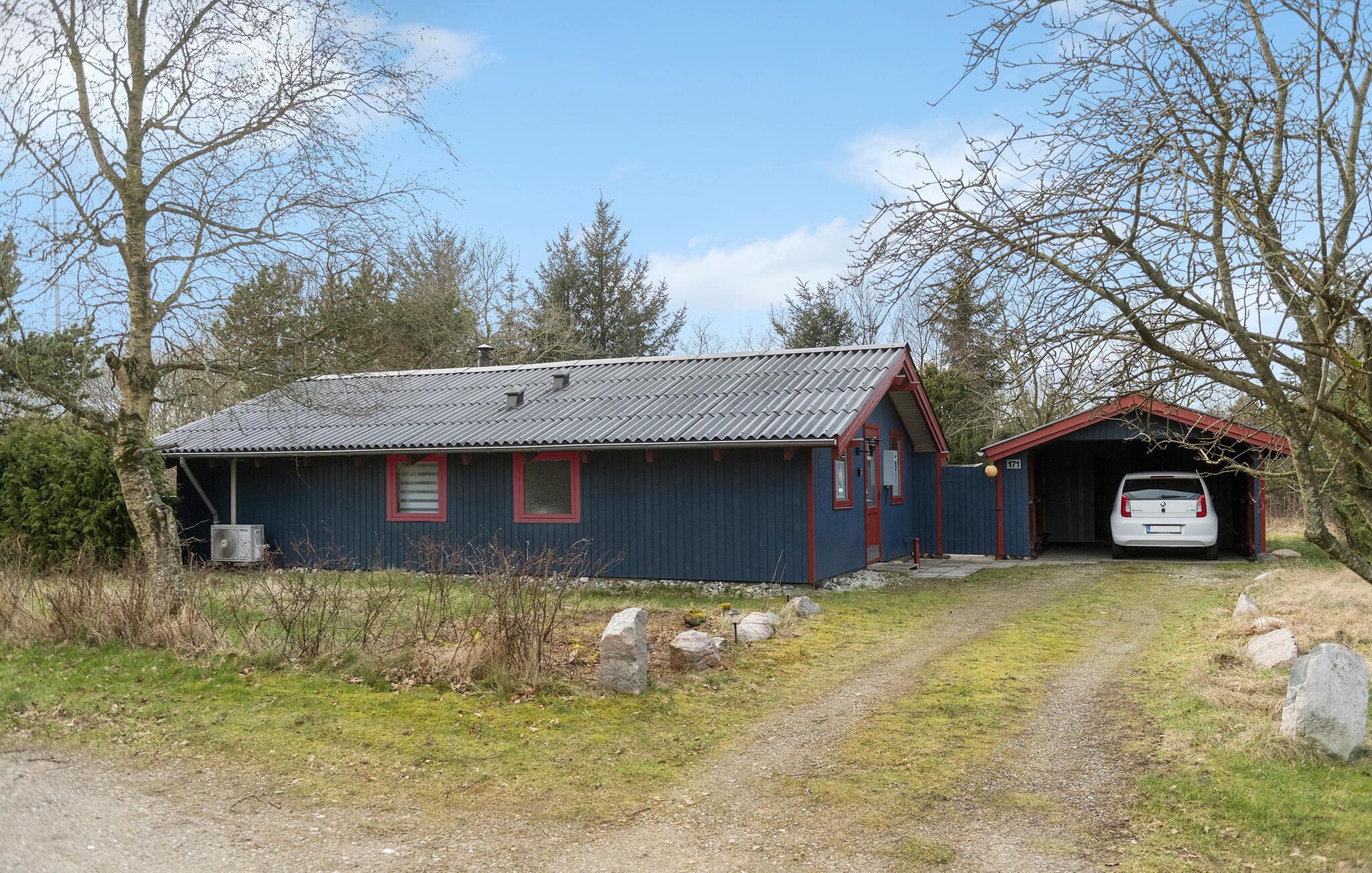Dette charmerende hus ligger på en smukt beplantet naturgrund og emmer af autentisk sommerhusstemning. Her kan hele familien nyde nogle fredfyldte dage. Gør lækre ferieretter klar i det åbne køkken og sæt jer til rette ved spisebordet, hvor I har en dejlig udsigt gennem de store vinduespartier. Efter en lang dag på farten kan I slå jer ned i siddeområdet og snakke om dagens oplevelser, ??mens flammerne knitrer i brændeovnen.