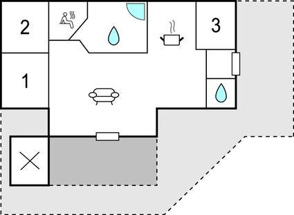 Badeværelse 6m2 (nr. 1) - WC. Varmt og koldt vand. Bruser