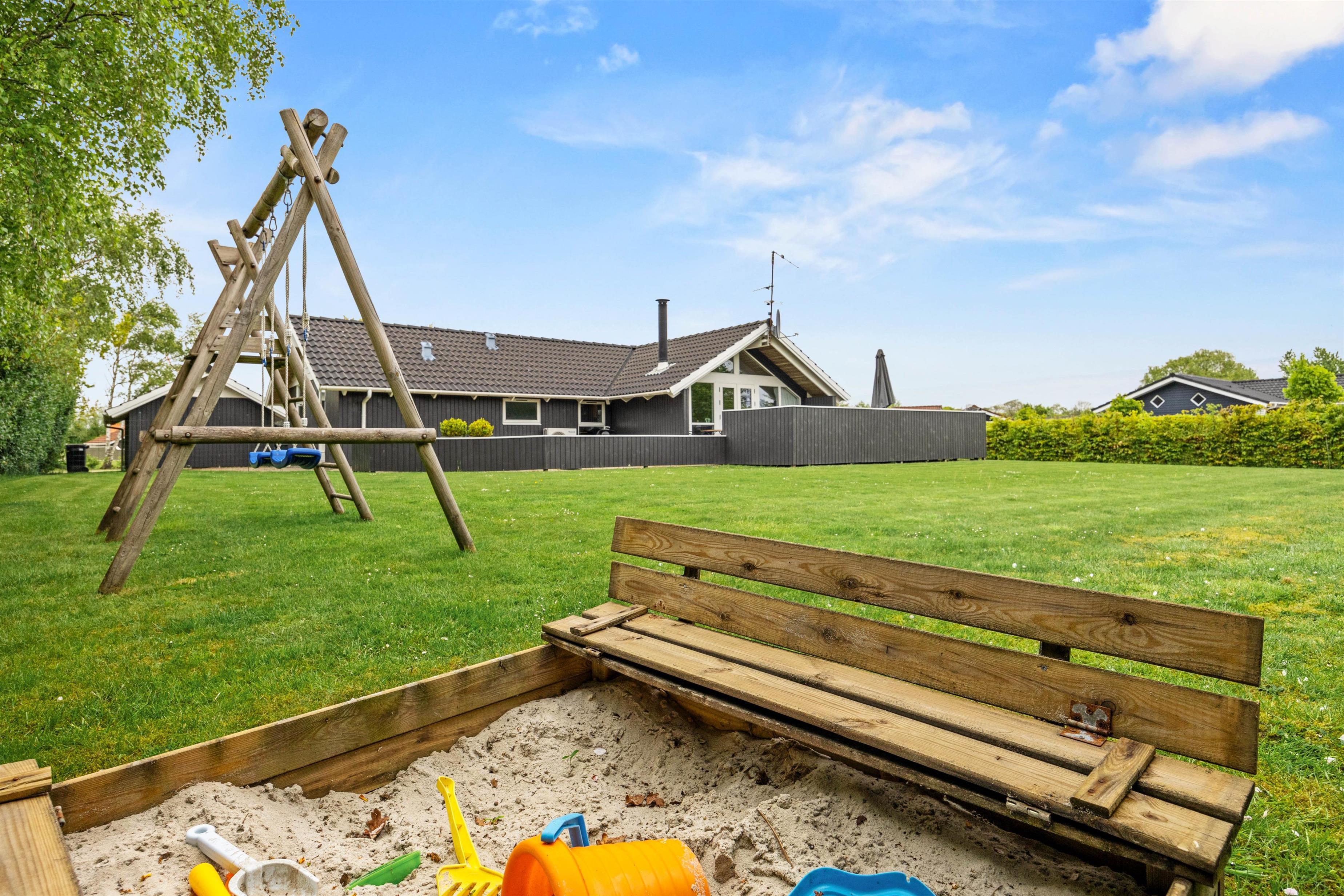 Udearealet ved sommerhuset er en sand oase for både afslapning og leg, beliggende på en 1093 kvadratmeter stor grund. Som en praktisk tilføjelse har sommerhuset også et redskabsrum, hvor I kan opbevare cykler, legesager og andet udstyr, hvilket gør det let at holde udearealet ryddeligt og indbydende.