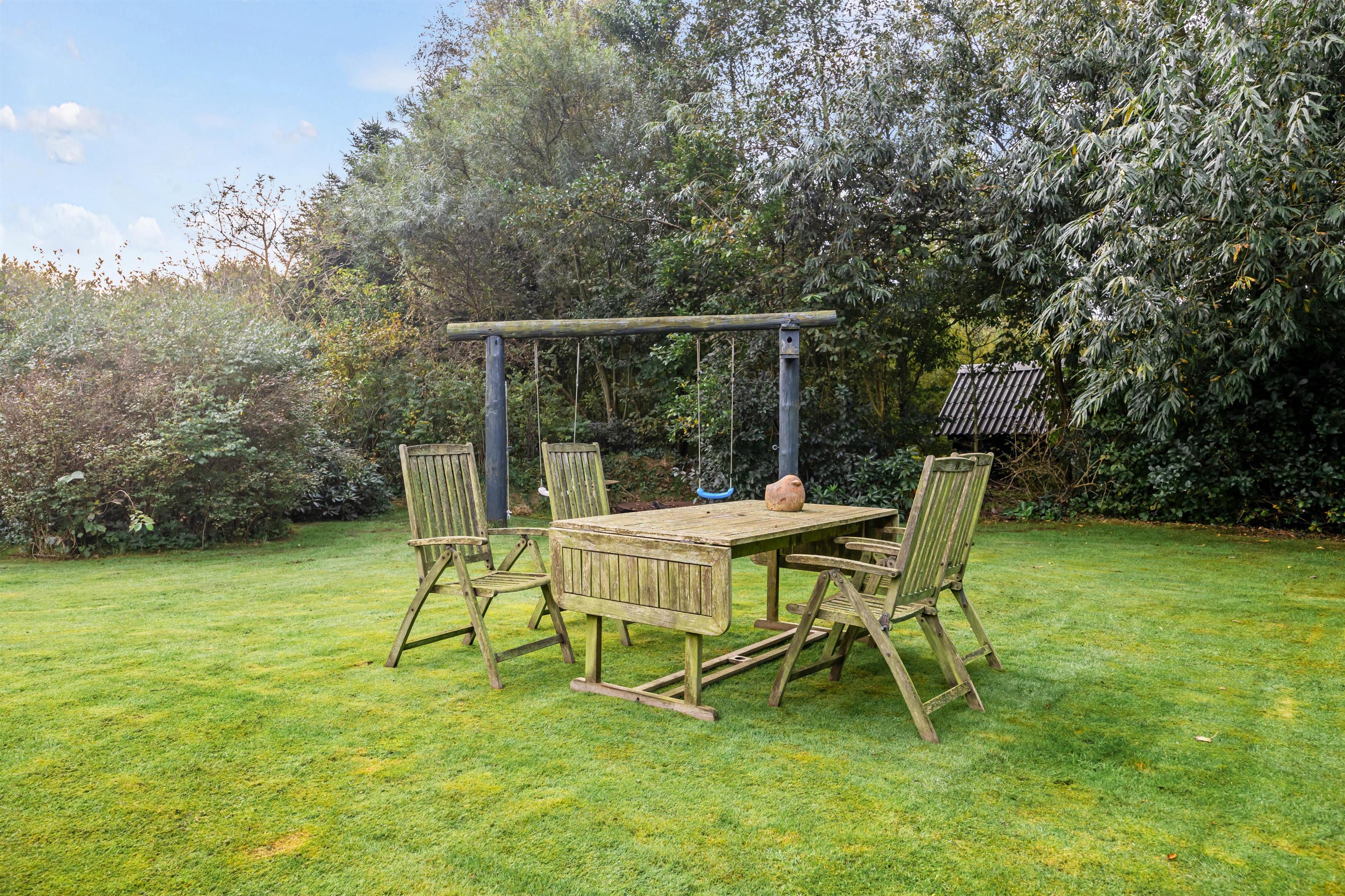 Den 1000 m² store plænegrund er et af højdepunkterne her, ligesom den delvist overdækkede terrasse med havemøbler og liggestole, hvor I kan nyde solrige dage eller slappe af i skyggen, når solen står højest på himlen. Haven giver også rig mulighed for leg og aktiviteter for børnene, som kan løbe rundt, gynge eller spille bold. Om aftenen kan I samle familien omkring grillen og lækre måltider, mens I nyder roen sammen.