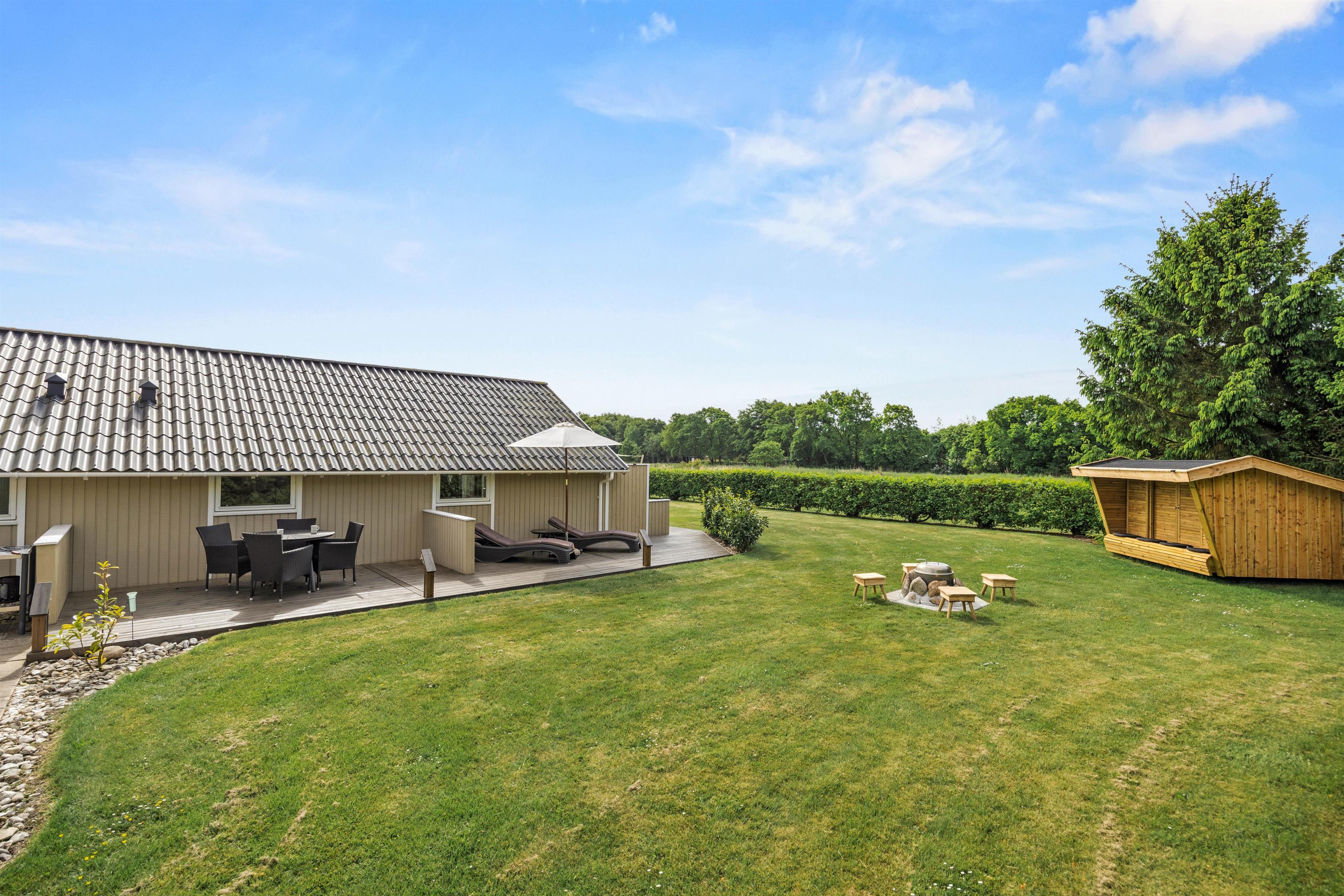 Fra terrassen kan I nemt gå ud på sommerhusets store plænegrund, som er perfekt til spil og leg for både store og små. Til børnene er der en sandkasse og en gynge, der kan tilbyde mange timers sjov og leg i det fri.