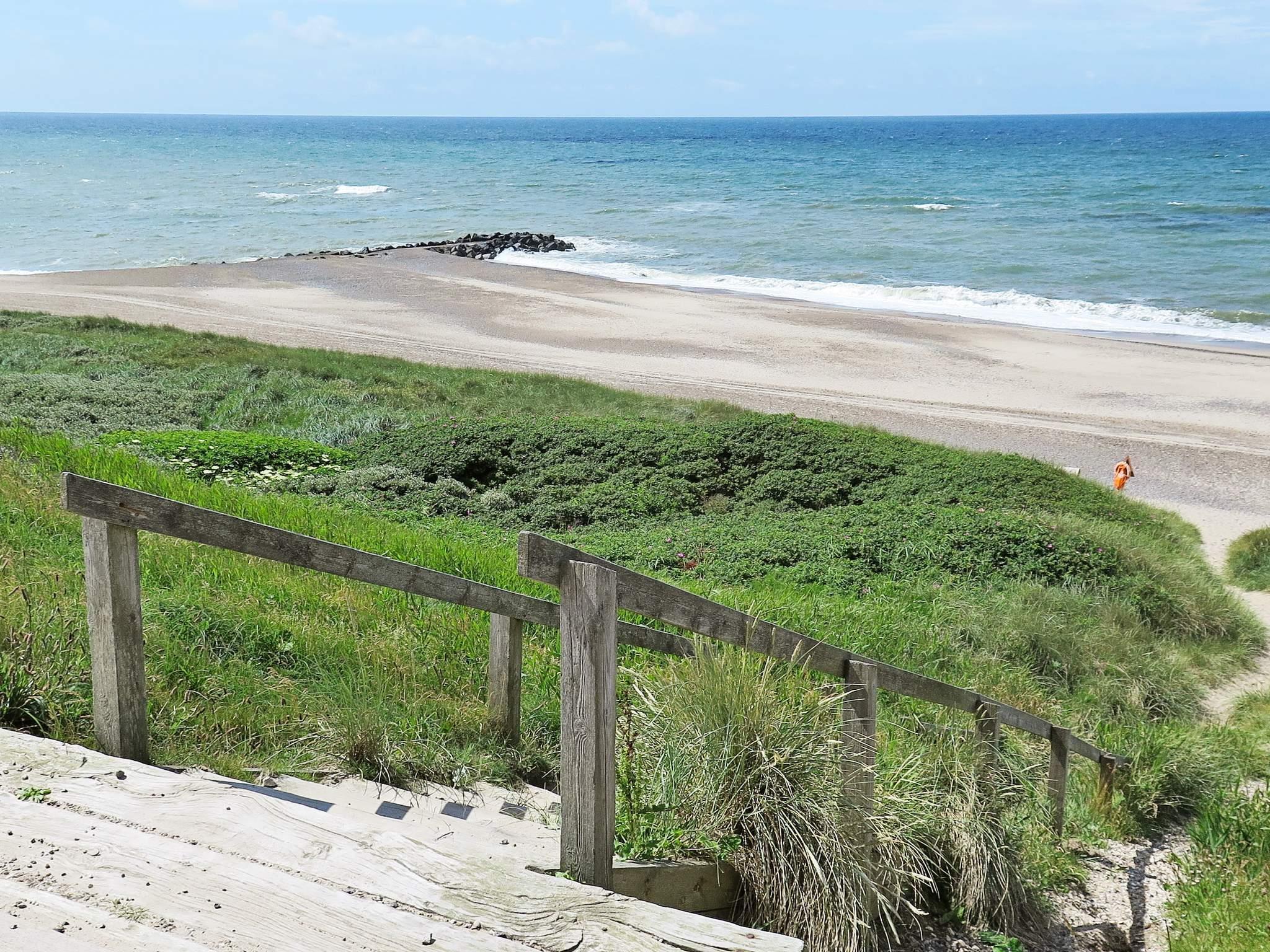 Sommerhus ca. 100 meter fra Vesterhavet og en stor sandstrand. Fra grunden er der en flot udsigt over havet og fra tagterrassen en fantastisk panoramaudsigt over Vesterhavet og området. Huset er opført som et dobbelthus med egen afdeling og indgang og beliggende i et hyggelig område med en blanding af helårshuse og sommerhuse. Opvarmningen sker ved centralvarme med oliefyr og er således billig i forbrug. Huset er indrettet med 3 værelser, alle med boxmadrasser, den ene er 3/4 seng. Der er trægulve overalt samt vandskurede vægge og malede lofter. Stort badeværelse med bruseniche, gulvvarme og 2-personers spabad. Moderne køkken i åben forbindelse med stuen med TV, der har den store VIASAT TV-pakke, PlayStation 3, bordfodbold og stereoanlæg med cd-afspiller. Desuden er der gratis ADSL-internetforbindelse. Et godt bud på en vellykket ferie uanset årstiden kan være paraglidning, fiskeri, surfing, badning, vandreture, 18-hullers golfbane samt 6-hullers pay and play bane.