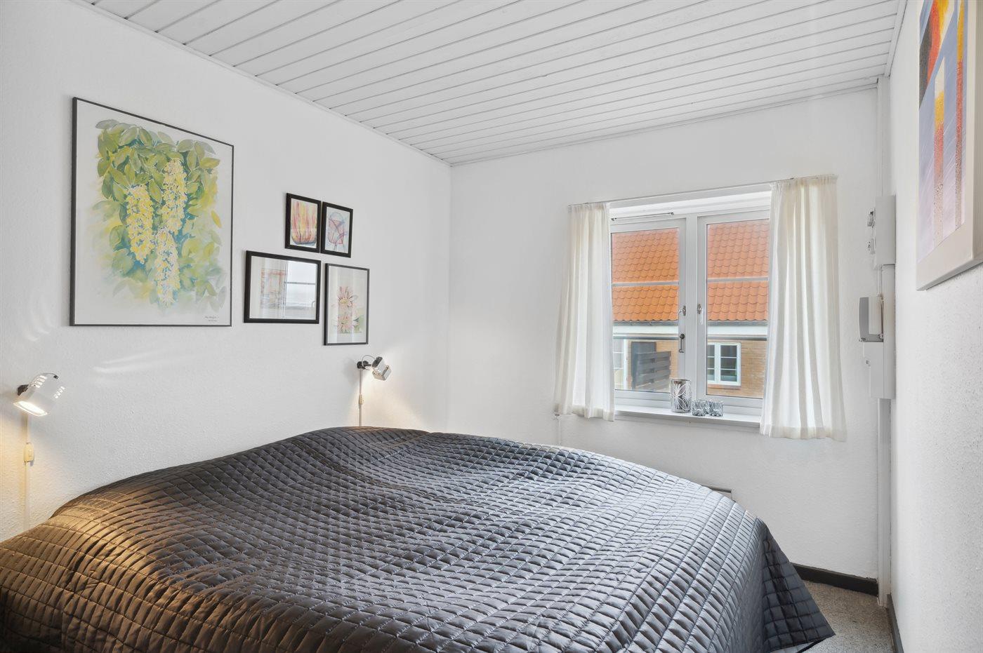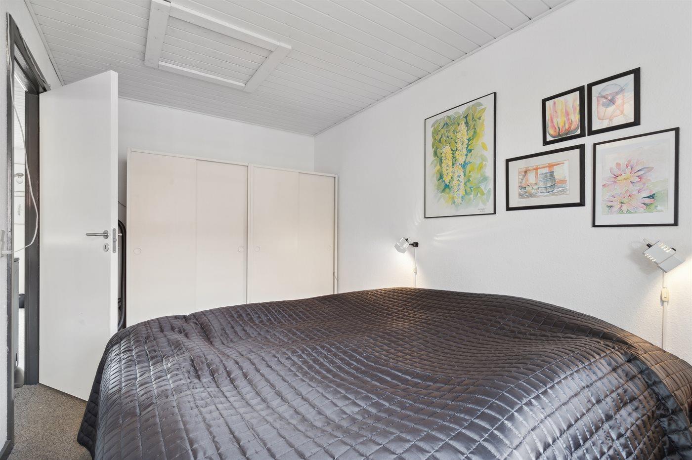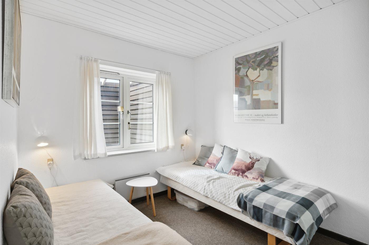 Der er i alt 2 soveværelser. Sovepladserne fordeler sig på: 2 sovepladser i dobbeltseng. 2 sovepladser i enkeltsenge. 2 sovepladser i sovesofa (enkelt). 2 af disse sovepladser befinder sig i stuen.