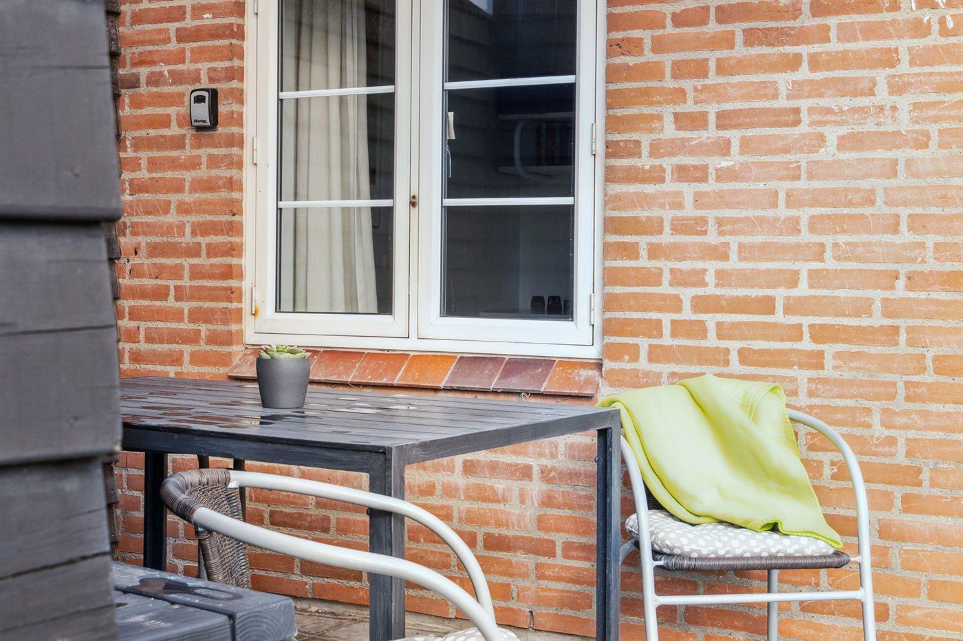 Hyggelig ferielejlighed ved Bovbjerg Strandpark med overdækket terrasse og tæt på Vesterhavet.