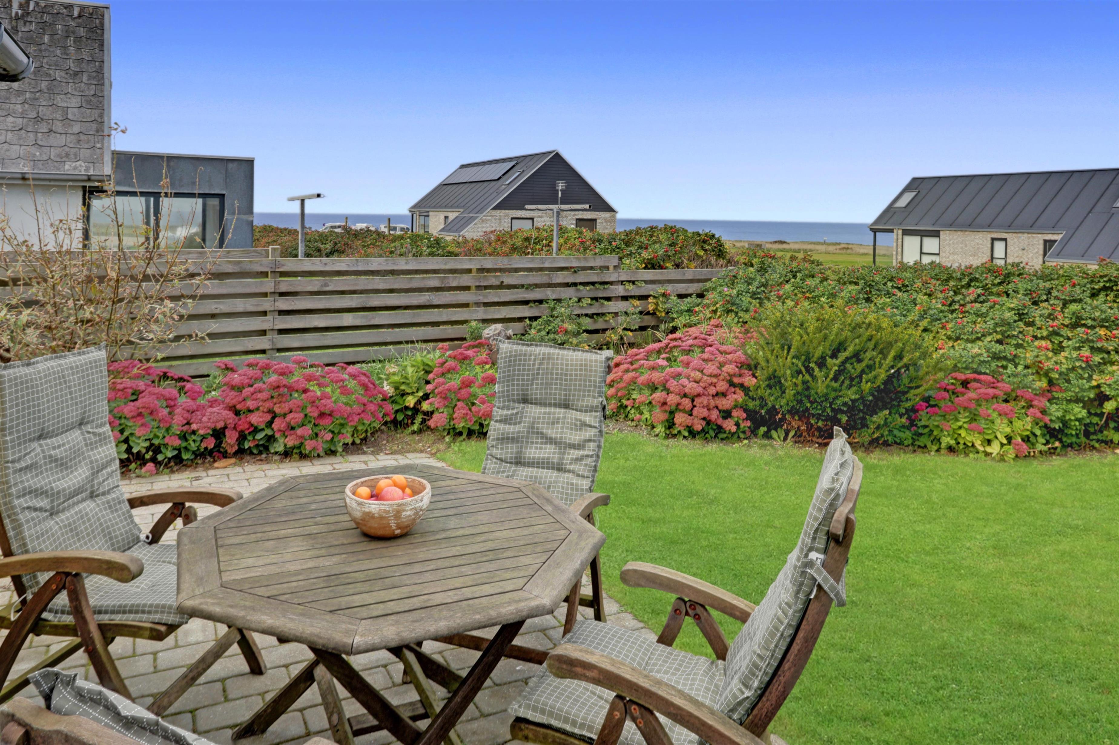 Lejligheden ligger i forbindelse med ejerens bolig, men har egen indgang, så I kan nyde privatliv og ro. Udenfor venter en dejlig delvis overdækket, gårdhave og terrasse med havemøbler, grill og solvogne og en have – alt sammen med udsigt til det brusende hav.