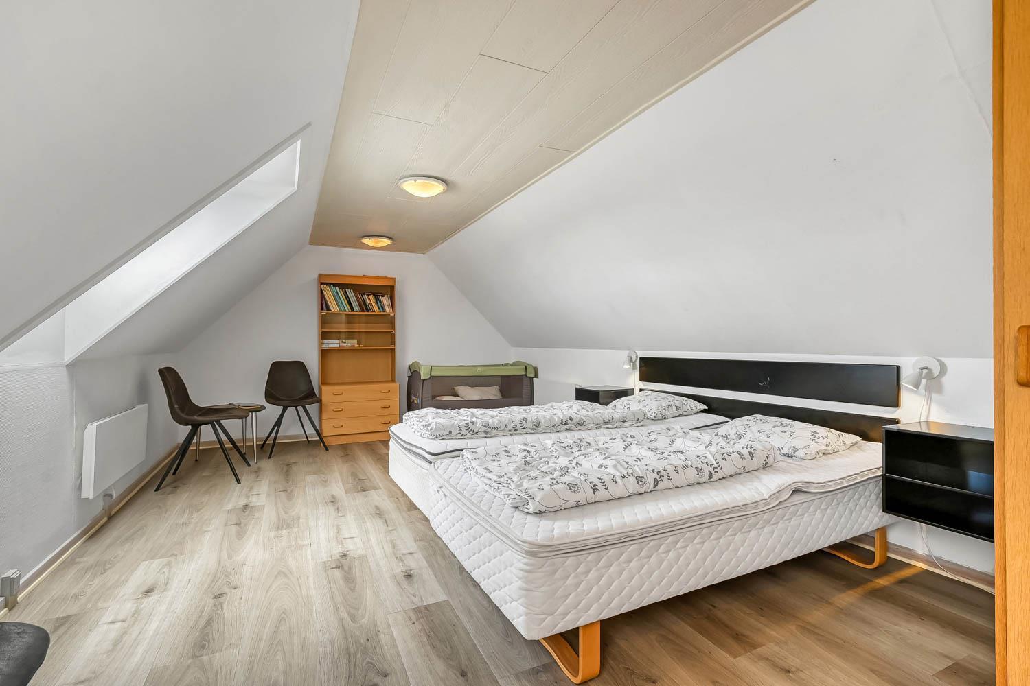 Huset er bygget i 1965. I 2015 blev der gennemført en stor renovering og herefter er huset løbende renoveret senest i 2019. Kør ind på den store p-plads lige ved huset eller parker bilen i den dobbelte carport, som også er ideel til den hyggelige grillaften. En stor entré med masser af plads og aflæggeplads byder velkommen. Entréen Fungere også som fordelergang til huset mange afdelinger. Opholdsstuen er rummelig og der er masser af plads til hele familien hvad enten de ønsker at benytte huset fladskærms-tv med tyske og danske programmer eller se en DVD. Medbragte CD kan også afspilles og selvfølgelig er der også en radio. Flotte lædermøbler og læderstole som både kan sættes sammen til endnu en sofa eller benyttes separat. Spisebordet er placeret tæt ved køkkenet som er afskærmet via en flot rund, åben, muret vælving. Det hyggelige landkøkken er veludstyret og har alt i hvidevarer. Komfur med glaskeramiske kogeplader, emhætte, køleskab med fryseboks, mikroovn og opvaskemaskine samt udgang til terrassen. Særdeles velplaceret når maden sættes på bordet enten ude eller inde. Såvel entré, opholdsstue og køkken er belagt med praktiske klinke med gulvvarme og en hyggelig brændeovn samt varmepumpe hjælper med hyggen og opvarmningen. Fra entréen er der adgang til et (1DS) af huset i alt 5 soveværelser. Adgang til badeværelse med toilet, håndvask, bruseniche og klinkegulv med gulvvarme. Ikke rygerhus. Vand og energiomkostninger sommer ca. kr. 400 til kr. 800. Vinter ca. kr. 1800 til kr. 2500 afhængig af vejret