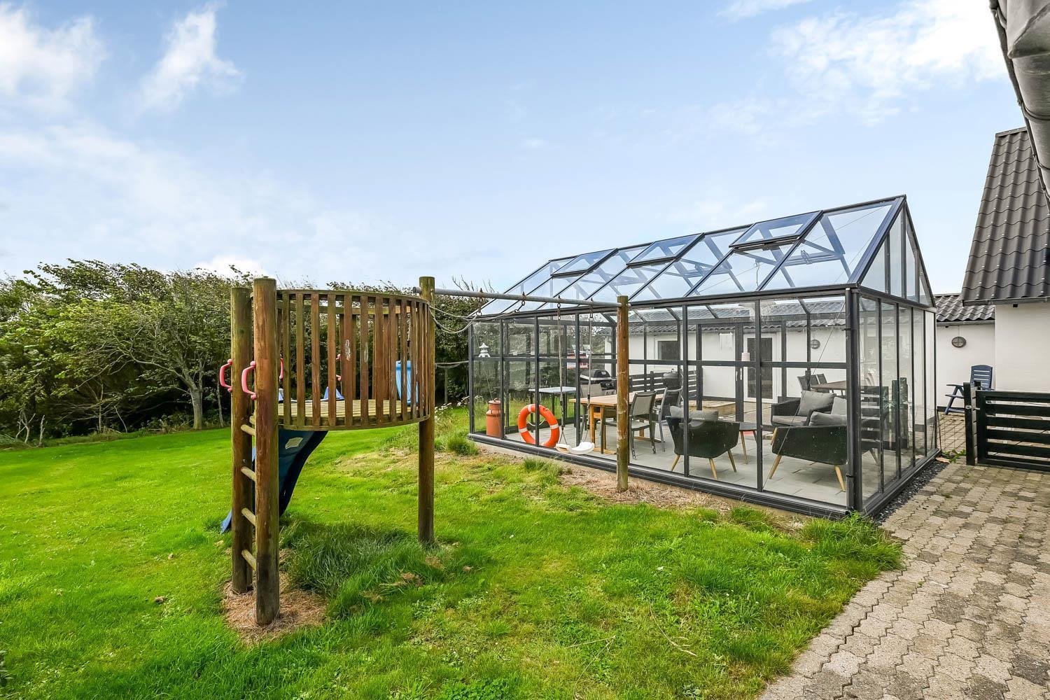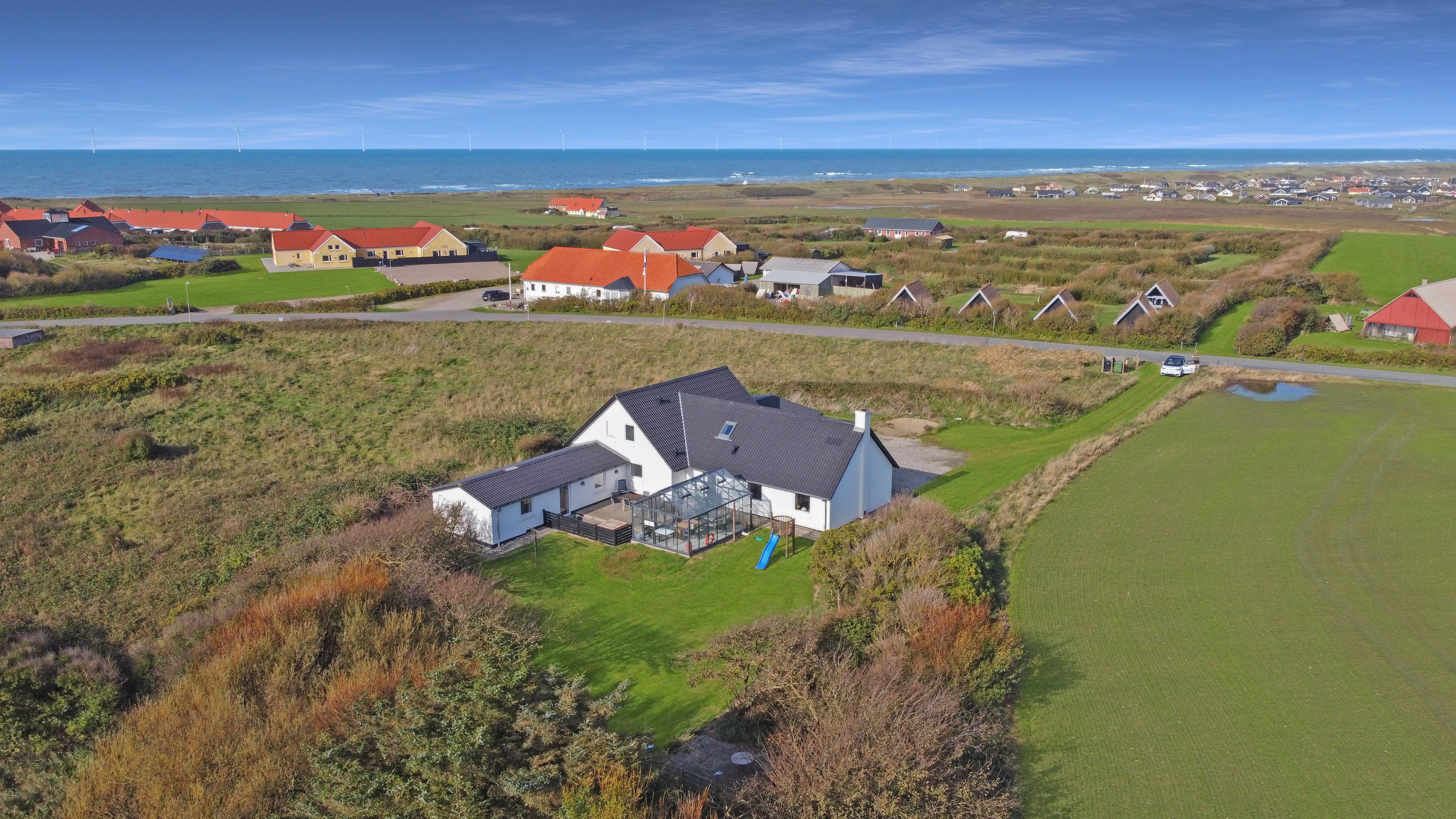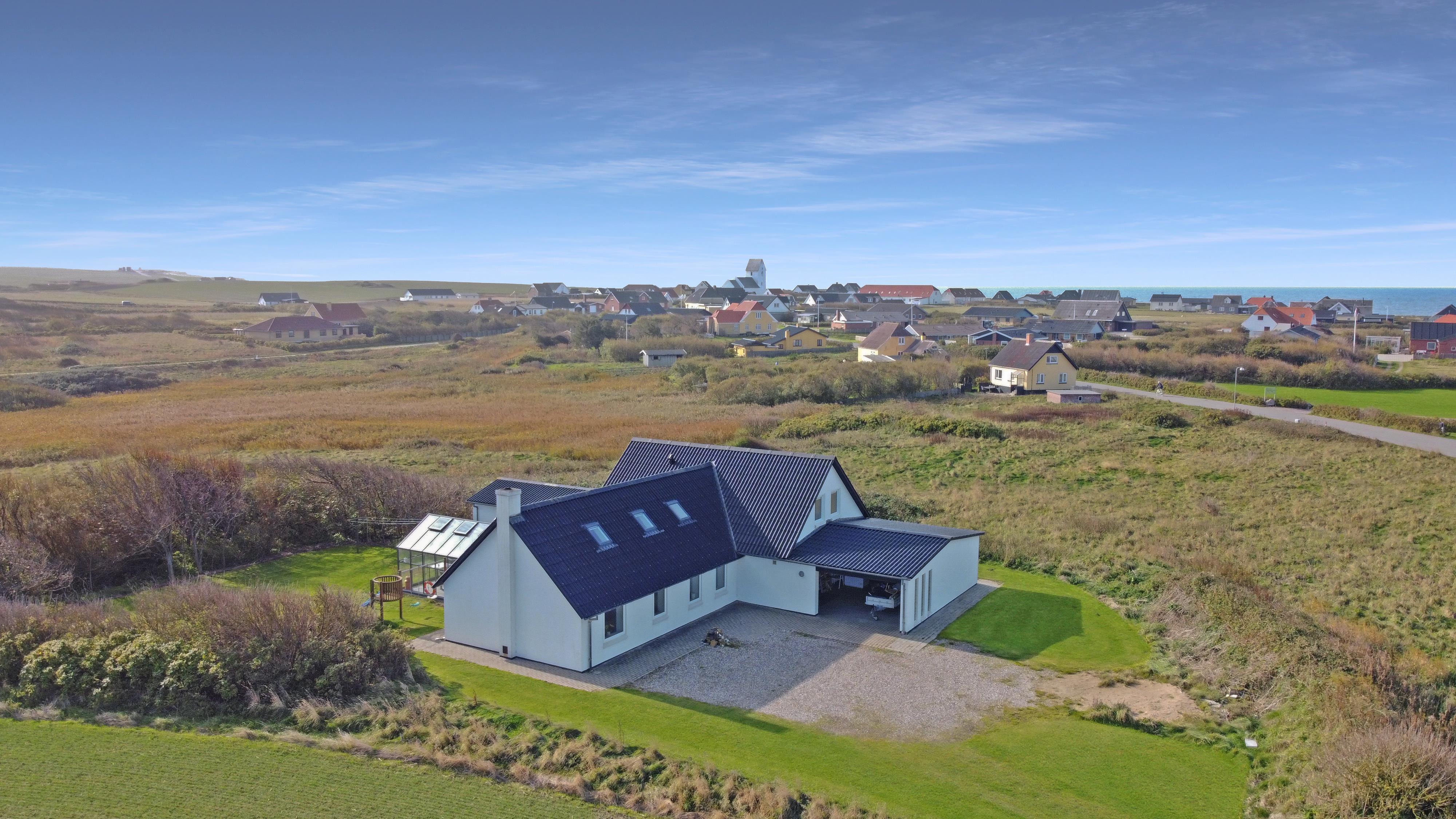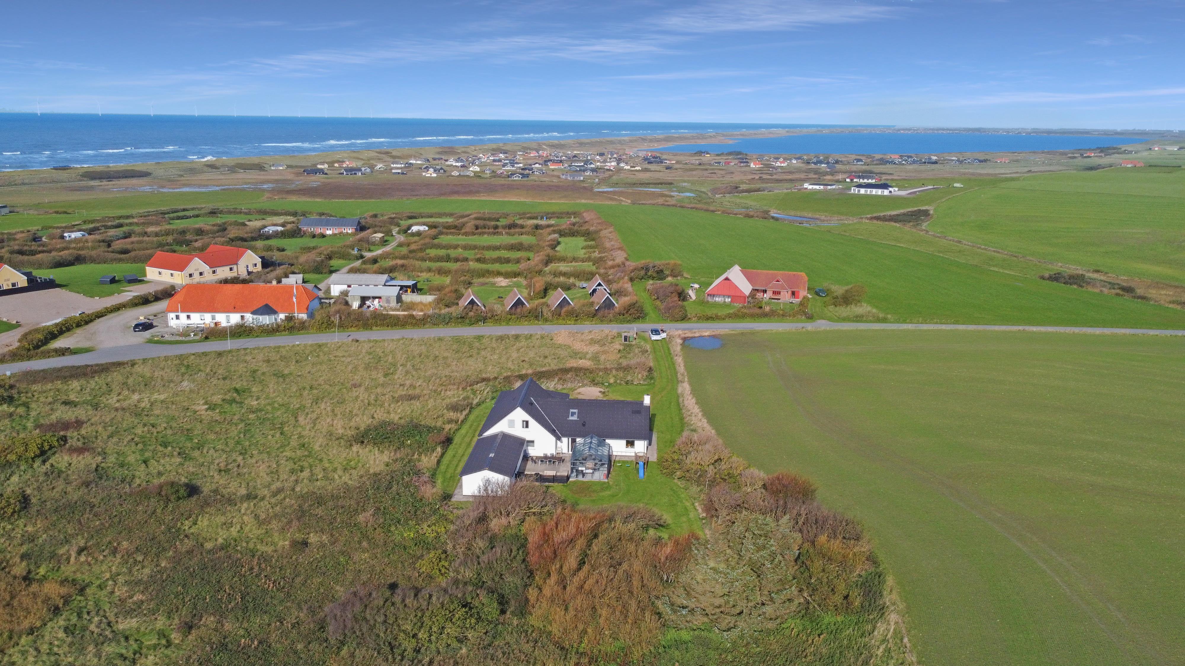 Der er masser af plads på den 5.000 m2 store grund og i haven er der masser af læ grundet den frodige beplantning som er nået den helt rette, ugeneret højde. Terrassen er indhegnet med rækværk så hverken hunde eller børn kan løbe ud. Der er havemøbler, liggestole, grill og i haven der sandkasse og et legetårn med gynger og ruchebane. Der er lagt fliser hele vejen rundt om huset. Huset ligget tæt ved Jens Søndergårdsmuseum og ikke lang fra Bovbjerg Fyr. Nyd en fantastisk gå- eller løbetur på stien som er anlagt helt ude på kanten af Bovbjerg Klint med unik udsigt over Vesterhavet. Oplev at Vesterhavet hverdag fortæller en ny historie. Besøg de mange attraktioner og oplevelser som nås indenfor max 30 min eller besøg fiskerbyen Thyborøn eller den dejlige handelsby Lemvig med masser af specialbutikker. I Sommermånederne kan de mest nødvendige indkøb klares hos Bovbjerg Camping. Det perfekte rummelige hus til max 10 personer beliggende i et unik moræne landskab som byder på masser af bakker, muligheder og romantik
