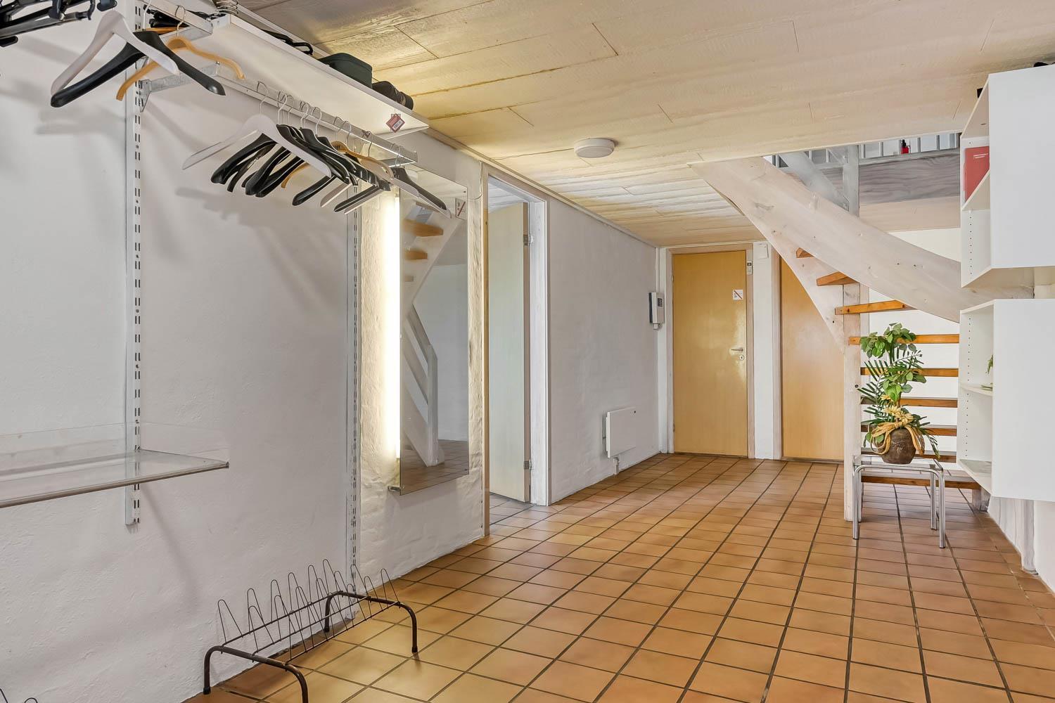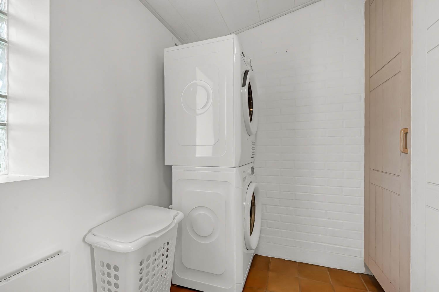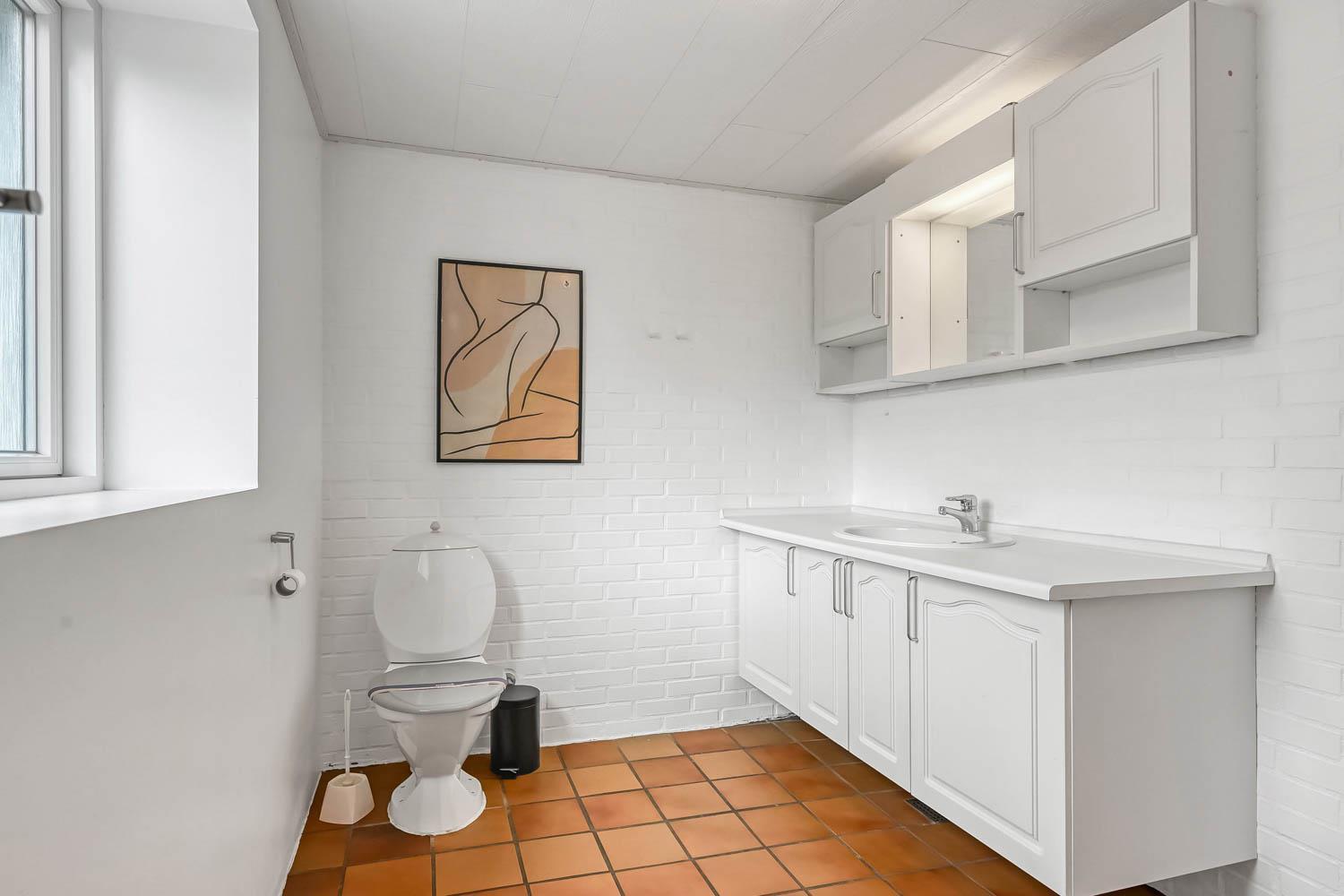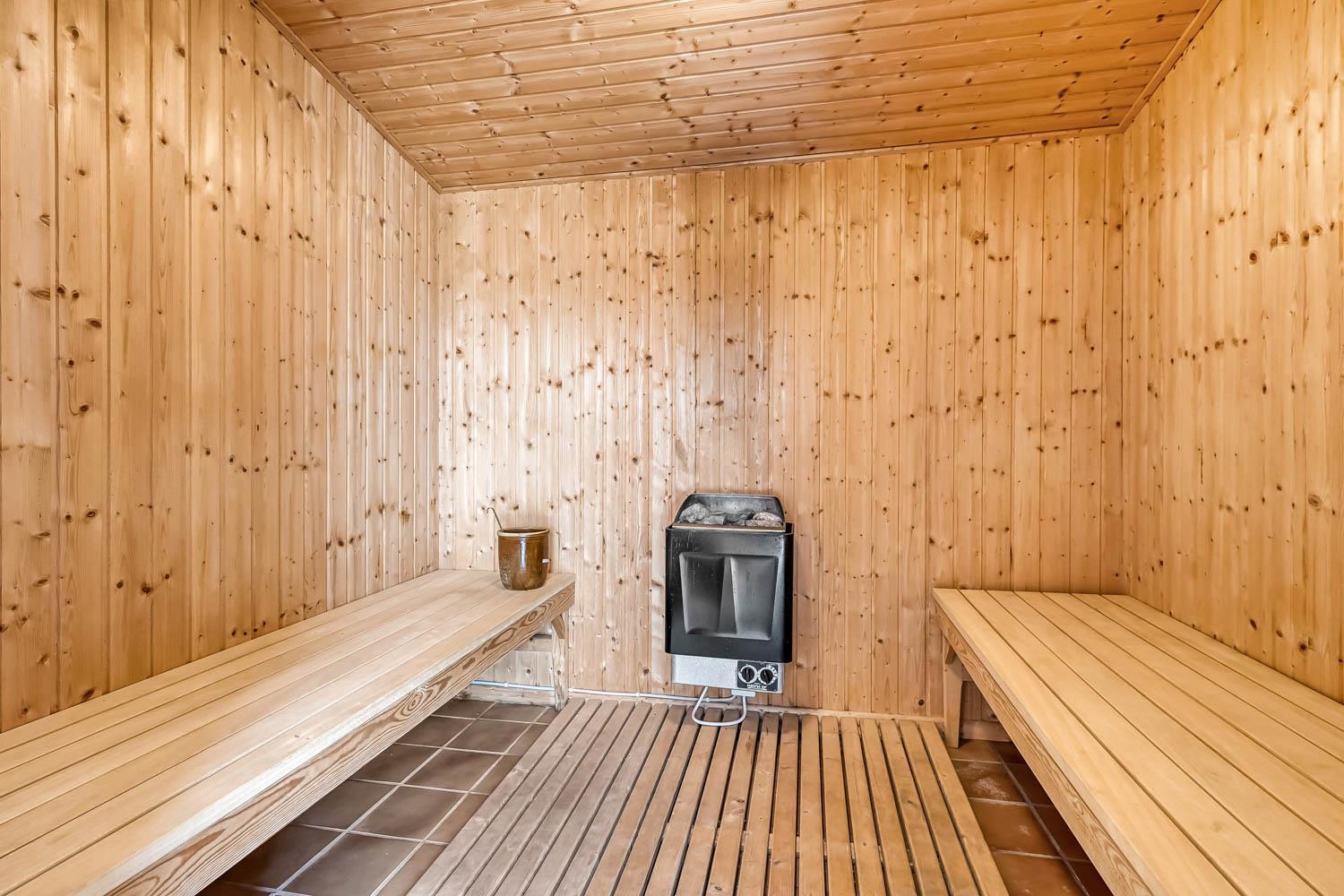 Via baggangen nås husets praktiske tilbygning. Her er der adgang til husets største soveværelse (1DS) med ekstra sofa og sofabord hvor en god bog let kan nydes. Fra baggangen er der ekstra udgang til terrassen og herfra er der adgang til det fantastiske orangeri hvor man kan sidde og nyde udsigten over markerne. Ekstra grovkøkken med praktisk håndvask, aflæggeplads, skabe og vaskemaskine. Tilbygninger byder også på et toilet med håndvask. Separat adgang til stor sauna og separat adgang til endnu et bad med bruser. For enden af gangen er der et dejlig rum med spabad, motionscykel og crosstræner. Helt perfekt til de aktive eller til dem som ønsker at forkæle dem selv med en tur i spabad. Der er klinkegulv med gulvvarme i hele tilbygningen. Barneseng og barnestol til de mindste gæster.