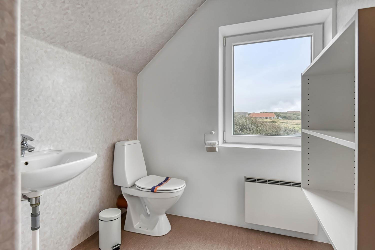 Tag trappen fra entréen op til 1 sal. Her er den en flot gang med siddeplads, samt adgang til lille gæstetoilet med toilet og håndvask. 3 værelser (1DS, 1DS, 2ES) som alle har en fantastisk udsigt enten over Vesterhavet eller over det bakkede landskab.