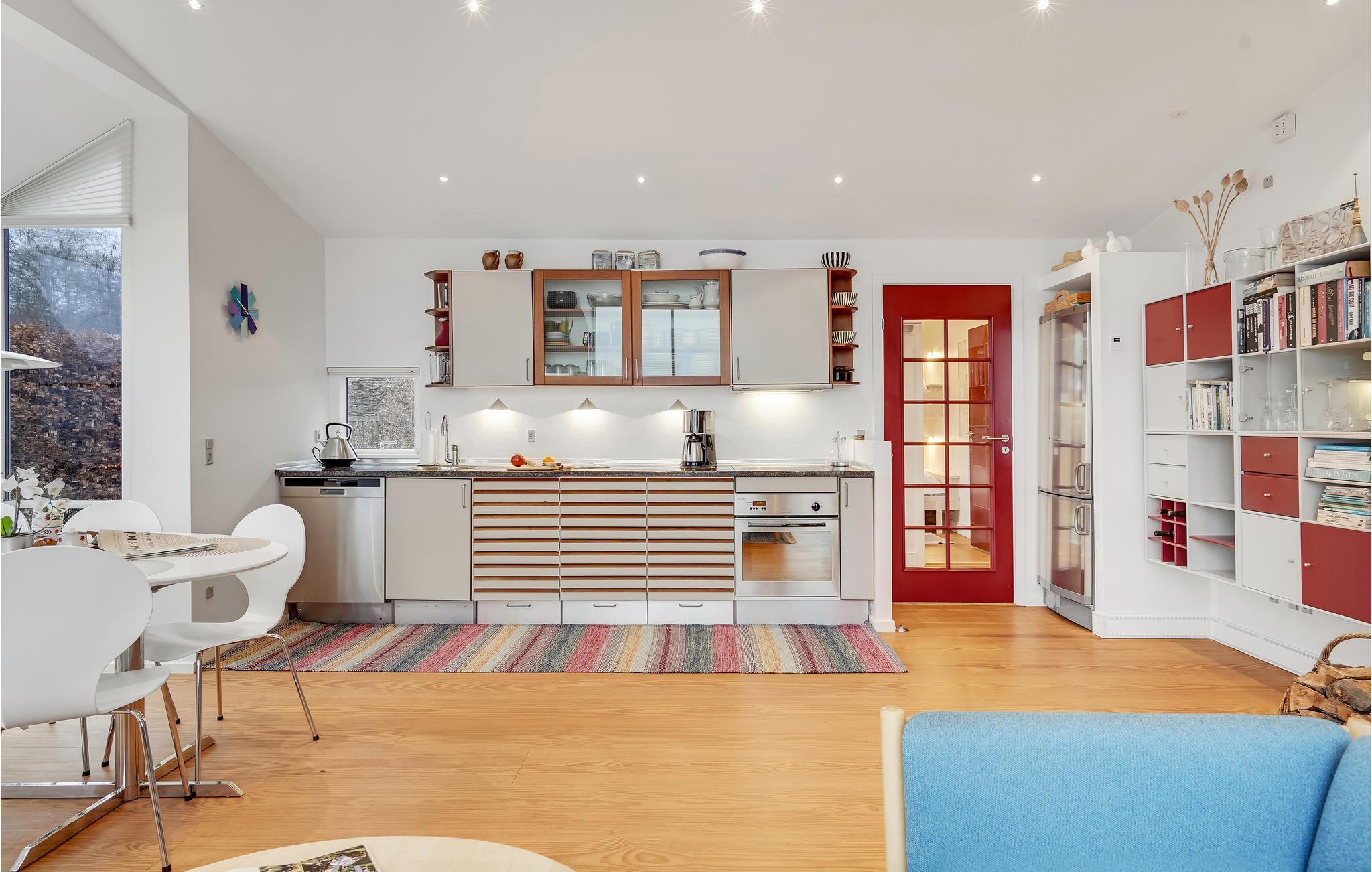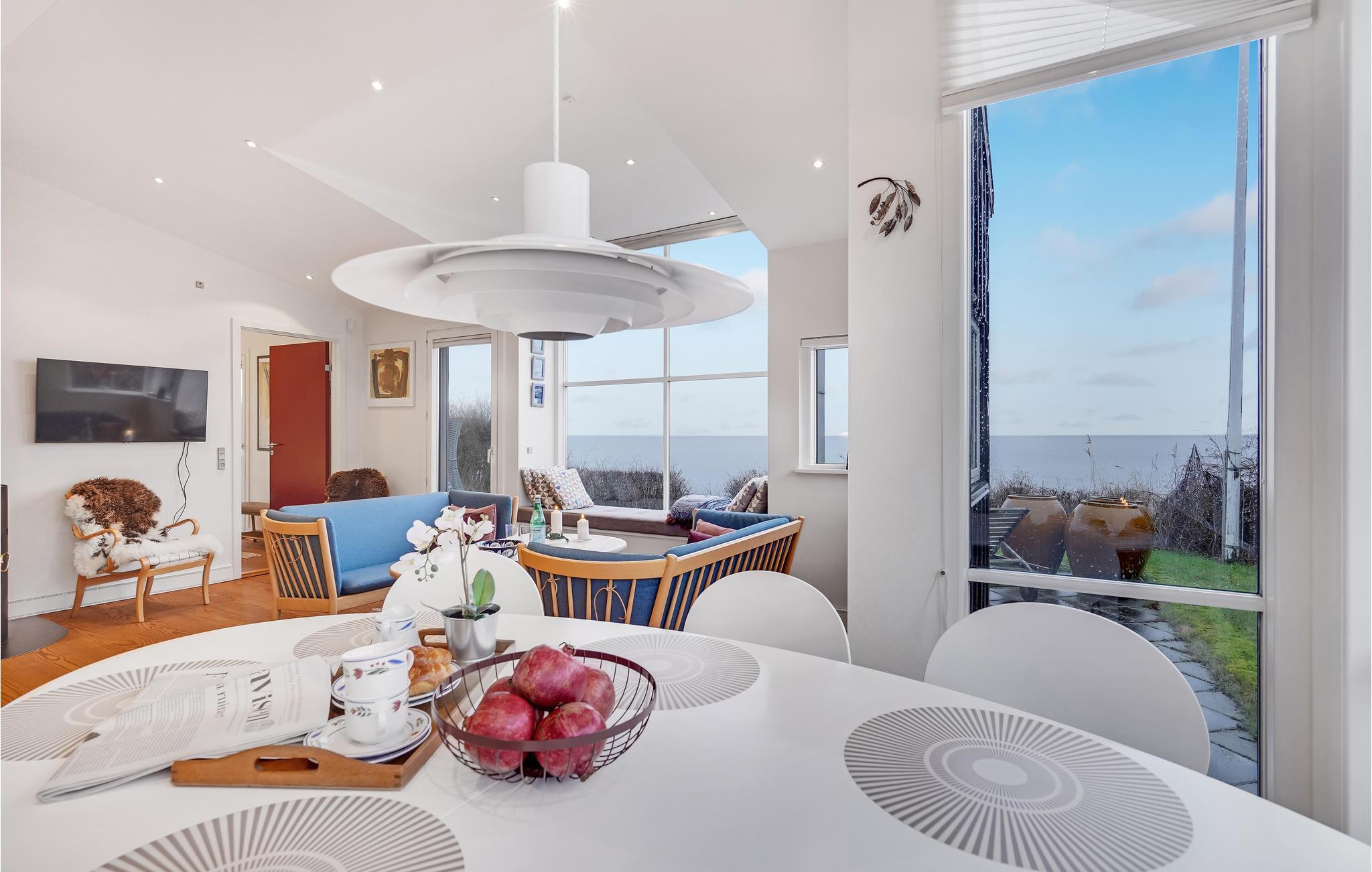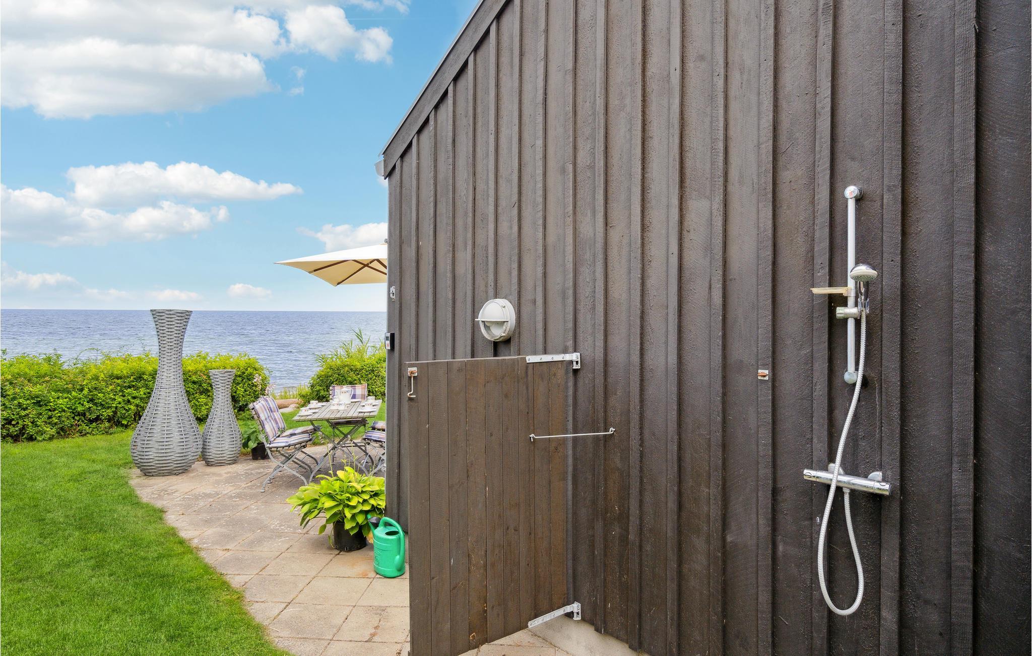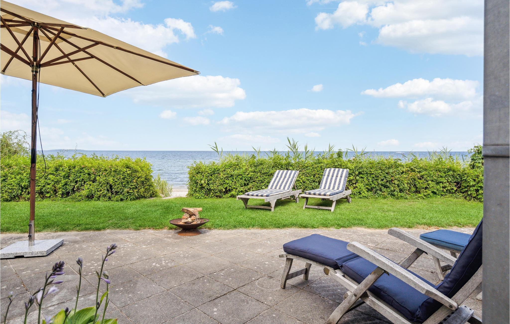 Glæd jer til en afslappet familieferie i dette lyse og indbydende sommerhus. Her vil hele familien hurtigt føle sig hjemme. Stuen med store vinduespartier giver jer en fantastisk udsigt til haven og havet. Fyr op i brændeovnen og sæt jer i vindueskarmen med en god bog og nyd stemningen. I kan også lave mad, lege eller se en god film sammen i dette store rum. Terrassen og haven er et højdepunkt på ejendommen. Man er sjældent så tæt på vandet og stranden. Start dagen med en lækker morgenmad på terrassen og slap derefter af på liggestolen eller løb mod Storebælts bølger og forfrisk jer i vandet.