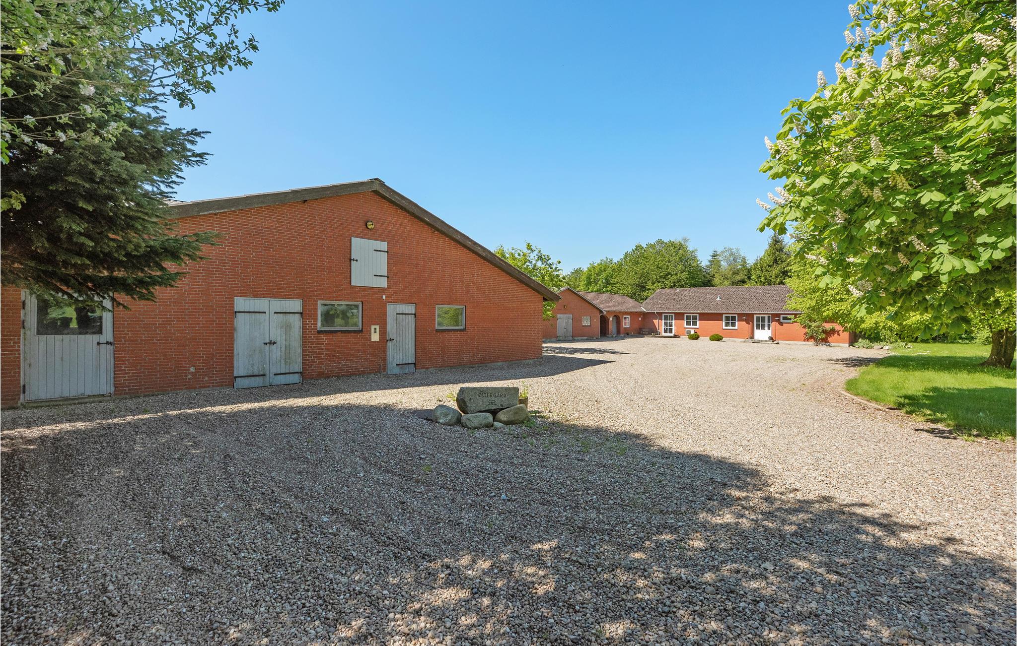 Inde i den charmerende tidligere gård finder I 5 soveværelser, 3 badeværelser, et køkken med spisestue og en smuk opholdsstue. Underholdning er forsynet med et aktivitetsværelse. I kan også nyde afslappende aftener i sofaen med en knitrende ild i pejsen eller med en god bog og slukke for hverdagen. Herfra har I også en vidunderlig udsigt over markerne.