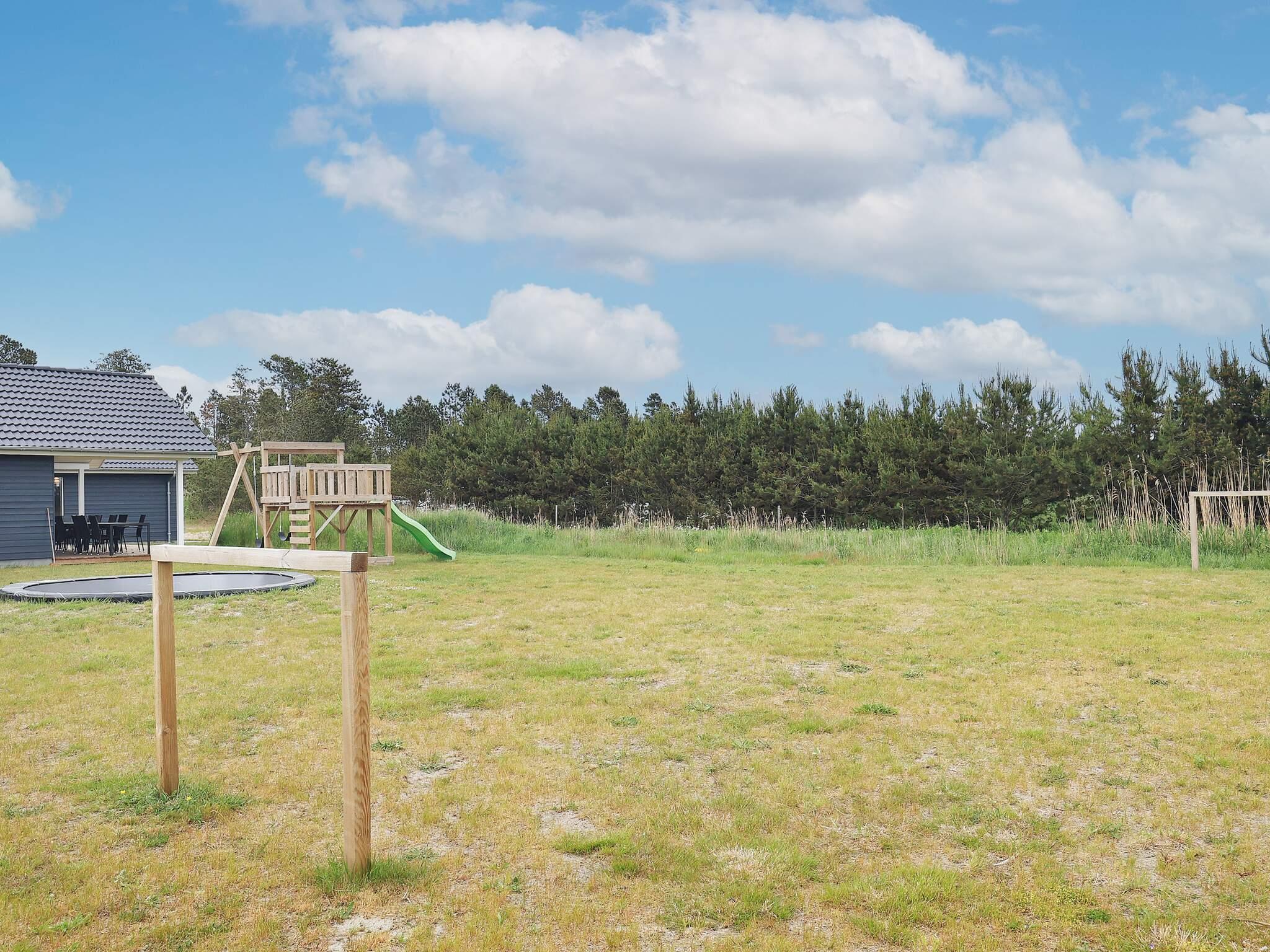 På grunden er der legetårn, gynge, sandkasse og trampolin (benyttes på eget ansvar/forsikring). Mod både øst og vest er der gode terrasser med gode havemøbler, hvor solen kan nydes og holde hyggelige grillaftener.