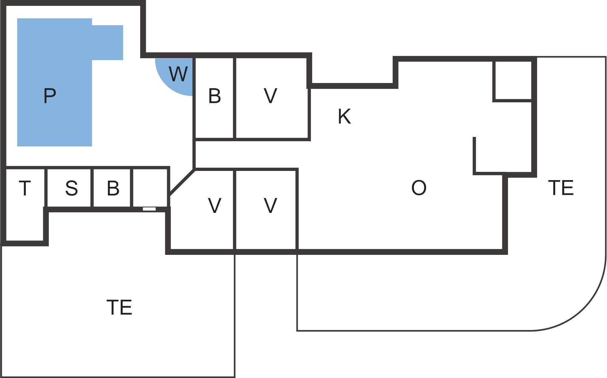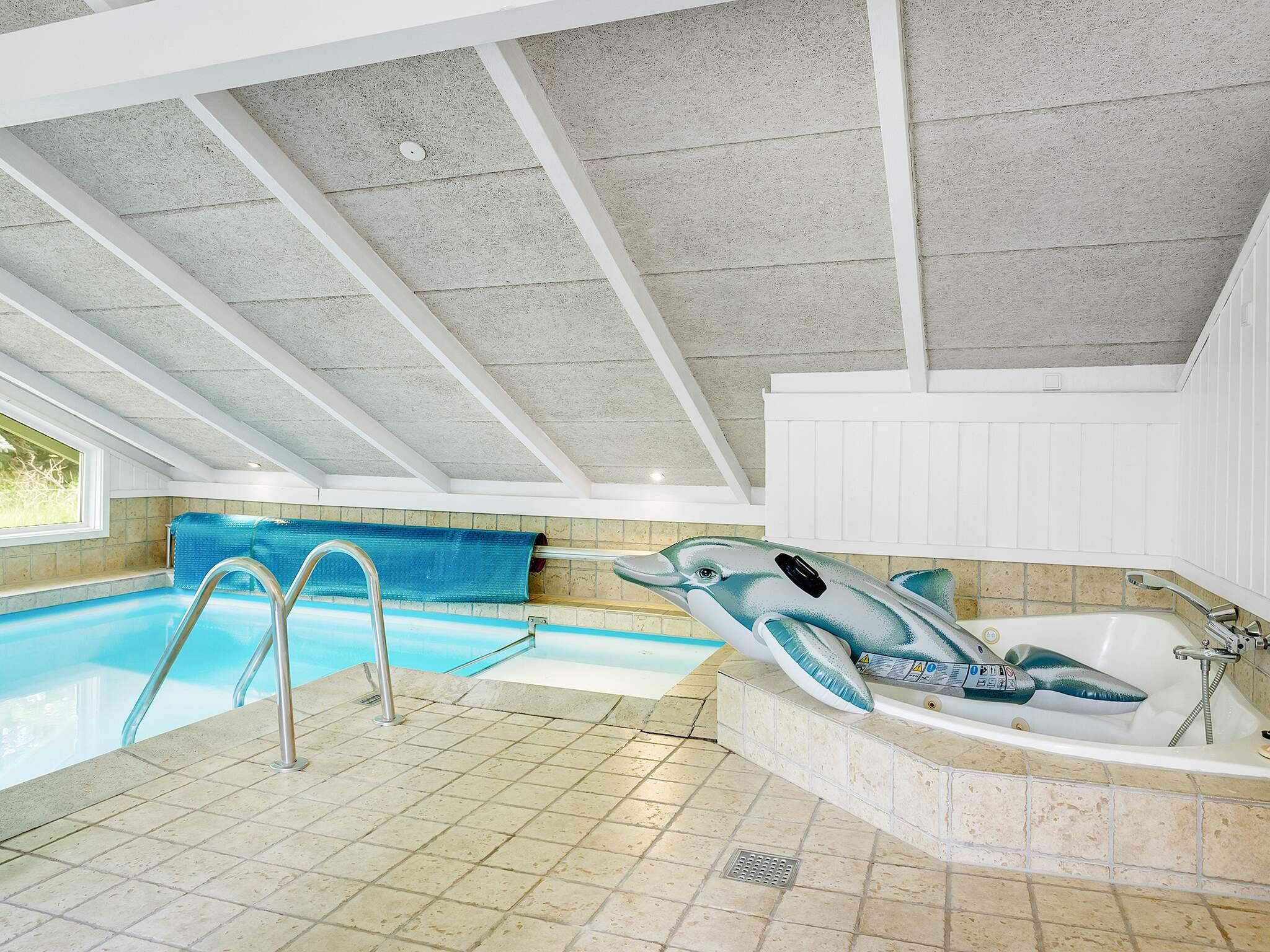 Sommerhusets poolområde omfatter stor swimmingpool, spabad og sauna med plads til fire personer. Swimmingpoolen er på 15 m² og har en rutsjebane til børn og en børnepool. Der er luft-til-luft varmepumper, som sikrer minimale varmeudgifter i poolområdet. Gulvvarmen i poolrummet og badeværelset opvarmes med vand fra en elektrisk vandvarmer.
