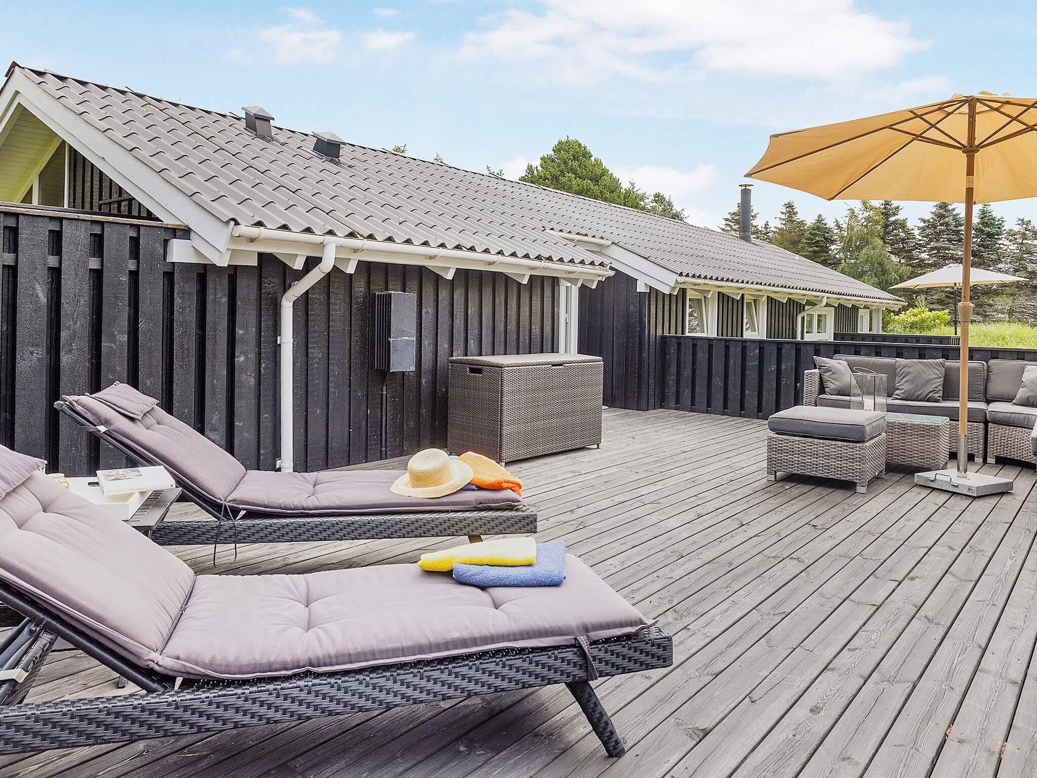 Terrassen omkring huset er helt fantastisk, så du kan nyde din ferie udendørs. Der er to terrasser, så man kan bevæge sig rundt og følge solen hele dagen. De mange afsondrede kroge er perfekte til alt fra solbadning og afslapning til grillning på en varm sommeraften.