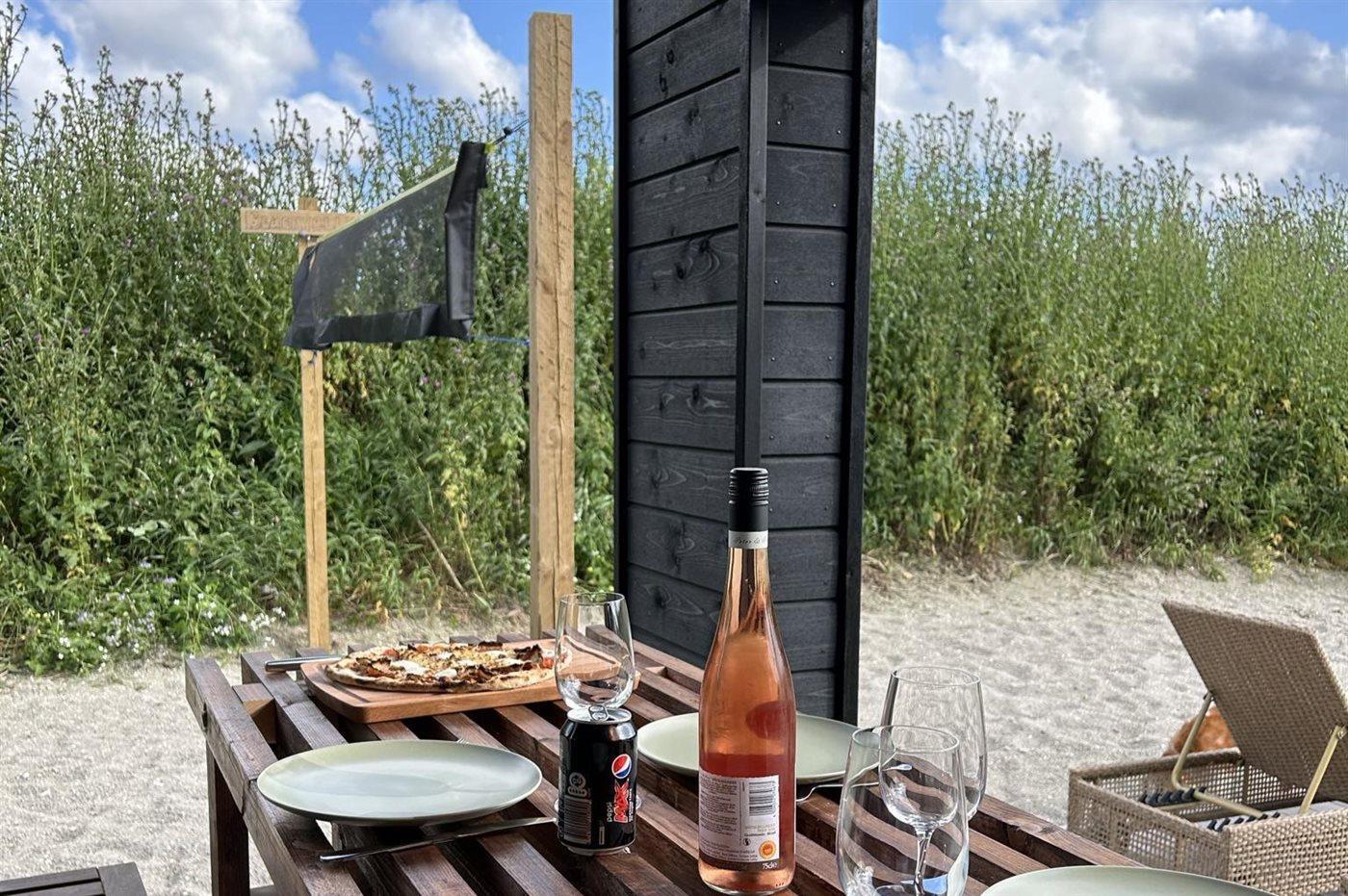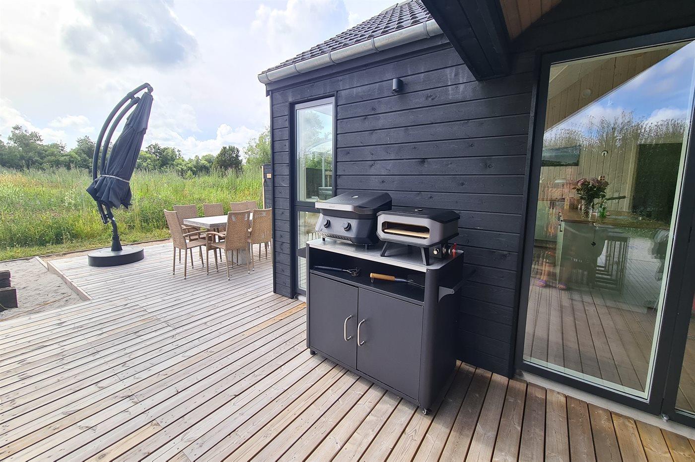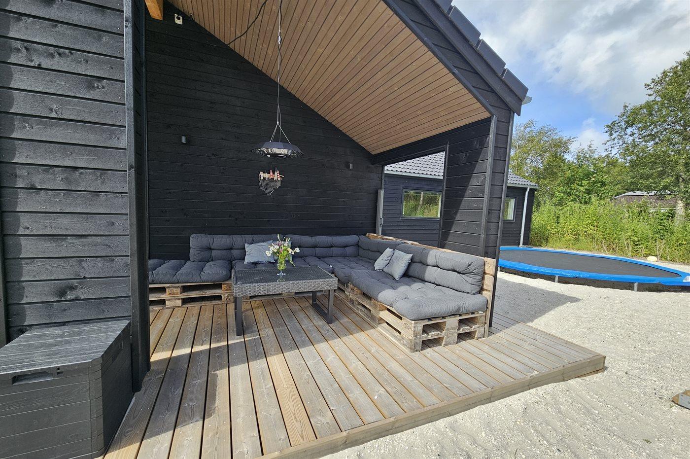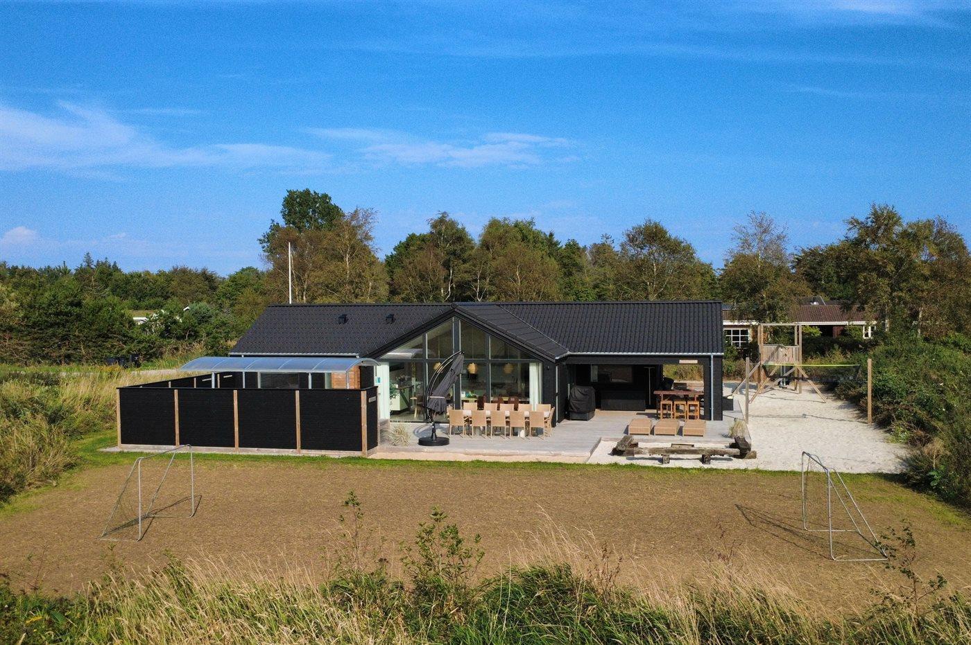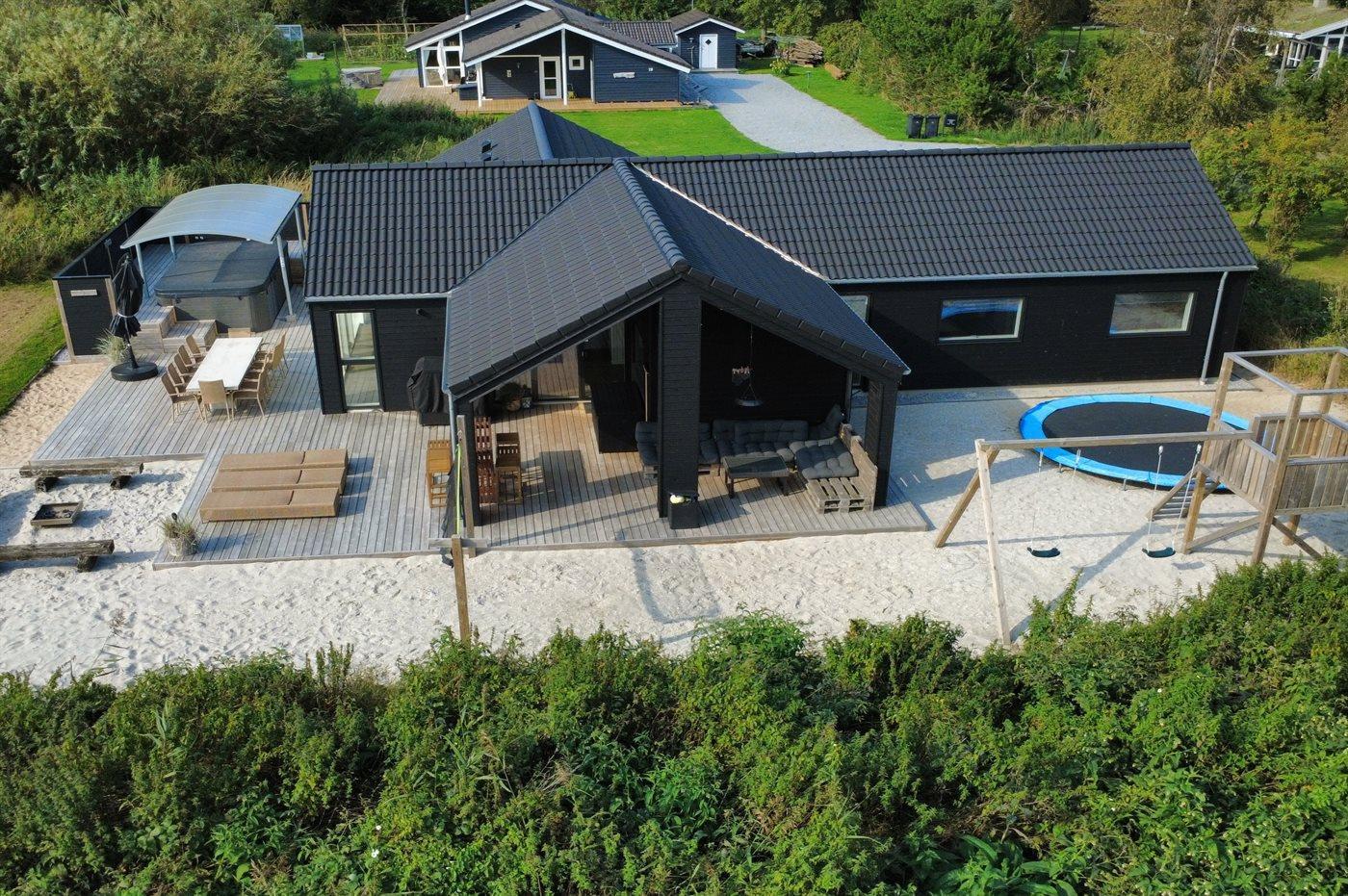 Ferieboligen er beliggende på en 3000 m² stor naturgrund. Der er 800 m til havet. Nærmeste forretning er beliggende i en afstand af 2000 m. Til ferieboligen hører åbent terrasseareal. Desuden er der overdækket terrasse. Gynge. Trampolin. Legetårn. Rutchebane. Beachvolley. Petanque. Udendørs bruser. Gasgrill og pizzaoven står til rådighed. Der er installeret stik til opladning af elbil. Med 11 kW ladeeffekt. Parkering ved ferieboligen.