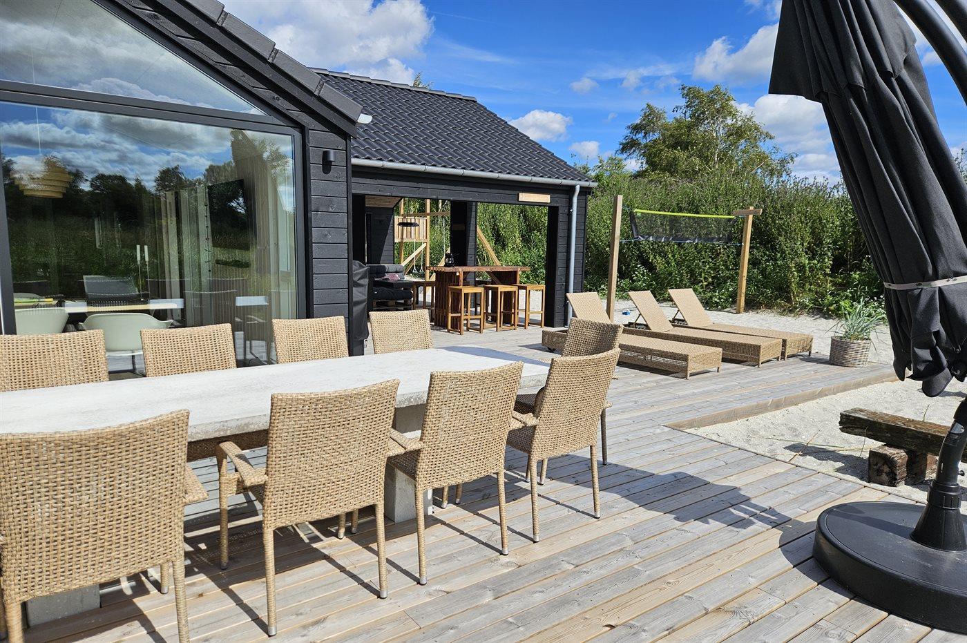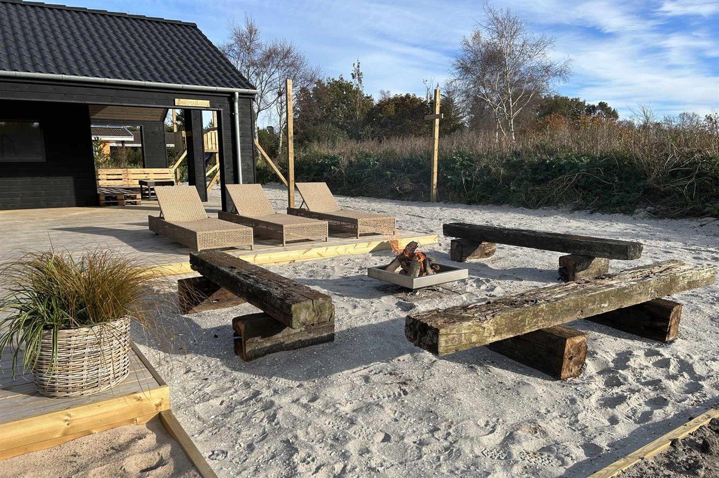 Nyt aktivitetshus tæt på børnevenlig strand med spa, legefaciliteter og store terrasser i naturskønne omgivelser.