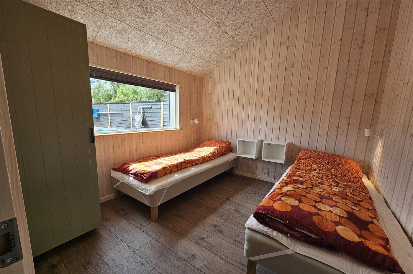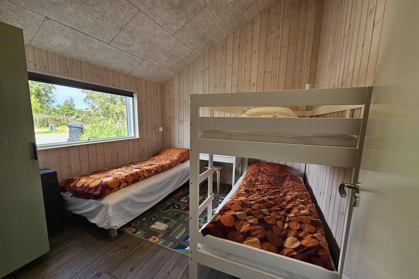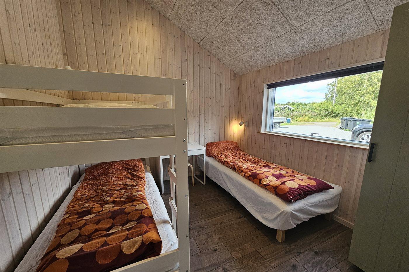 Der er i alt 5 soveværelser. Sovepladserne fordeler sig på: 2 sovepladser i dobbeltseng. 6 sovepladser i enkeltsenge. 4 sovepladser i køjesenge. Derudover er der 1 stk. barneseng.