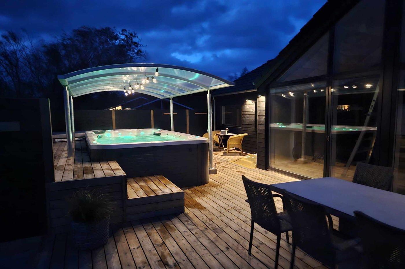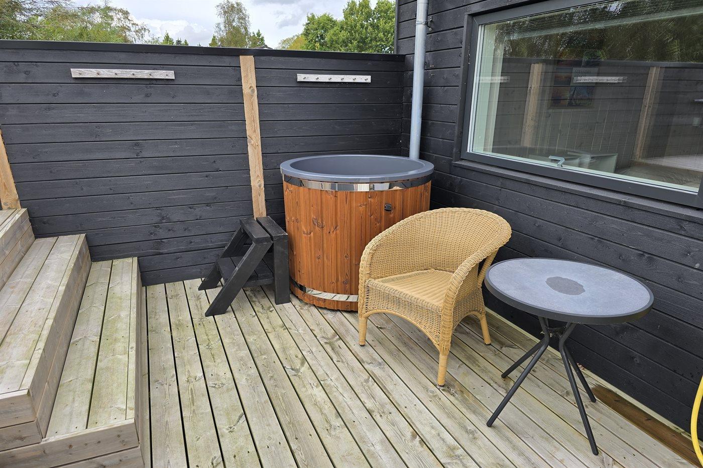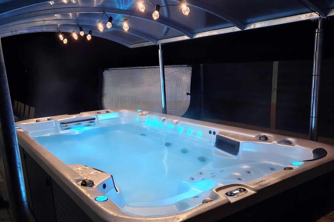 Der er mulighed for afslapning i udendørs swimspa til 12 personer.