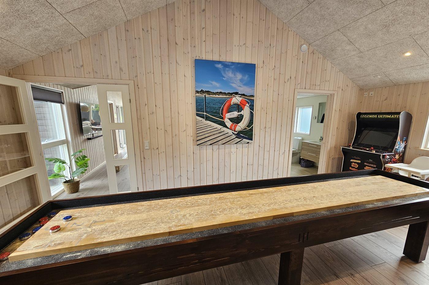 I aktivitetsrummet er der følgende udstyr: Shuffleboard. Bean bag ærtepose spil. Bobspil. Arkadespillemaskine.