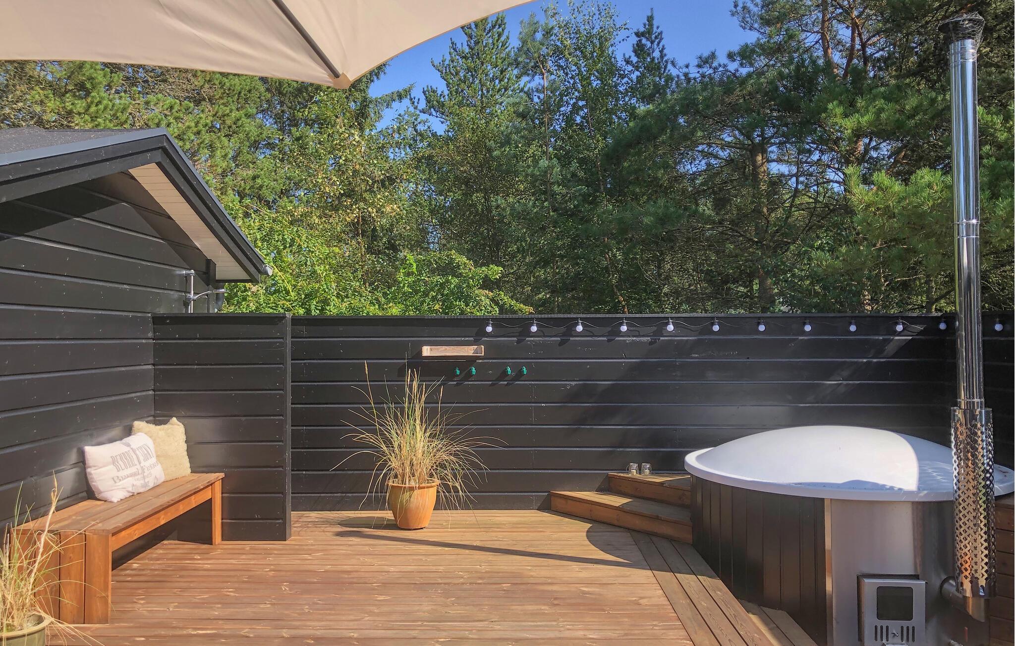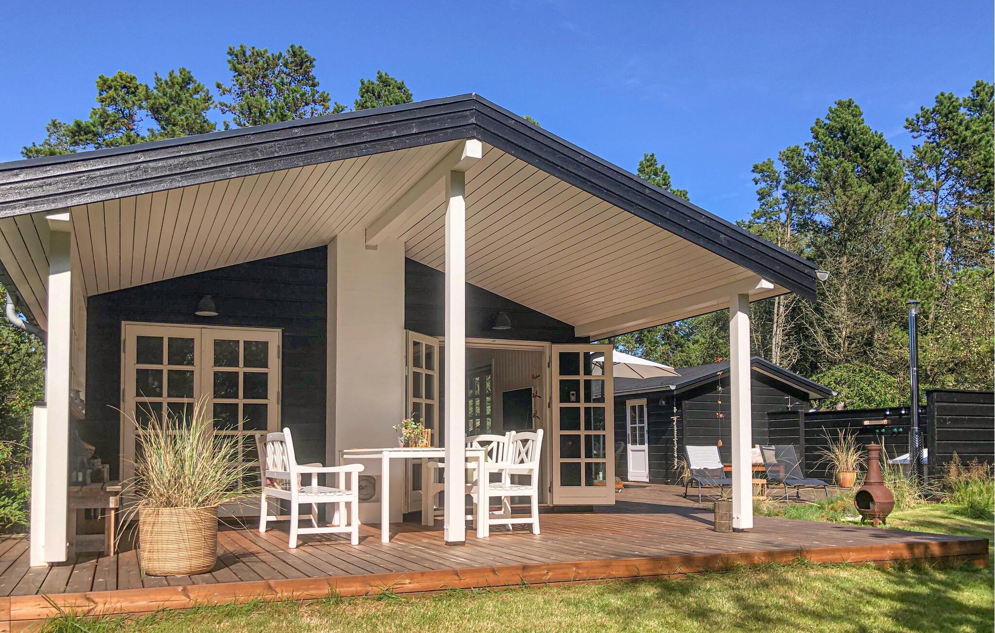 Charmerende feriehus ved Bratten Strand med vildmarksbad og ugeneret terrasse tæt på sandstrand.