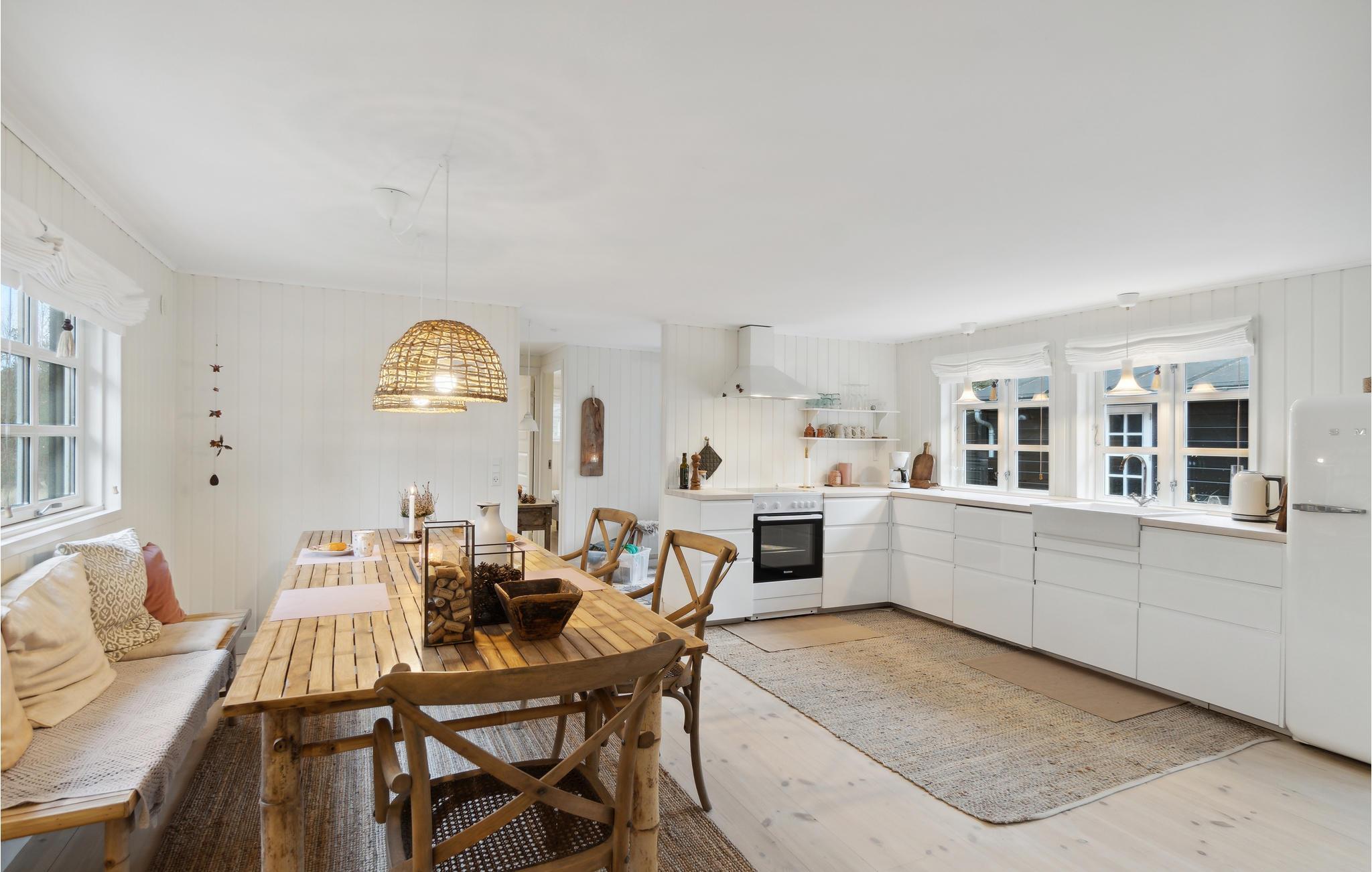 Der er lagt op til en afslappende ferie med et vennepar eller jeres lille familie i dette lyse og smagfulde hus. Her vil I straks nyde godt af husets hygge og komfort og bare få lyst til at smide jer i sofaerne foran brændeovnen. Den stilfulde indretning og de glimrende faciliteter giver jer alle betingelser for, at I hurtigt vil føle jer hjemme her og bare smække fødderne op.