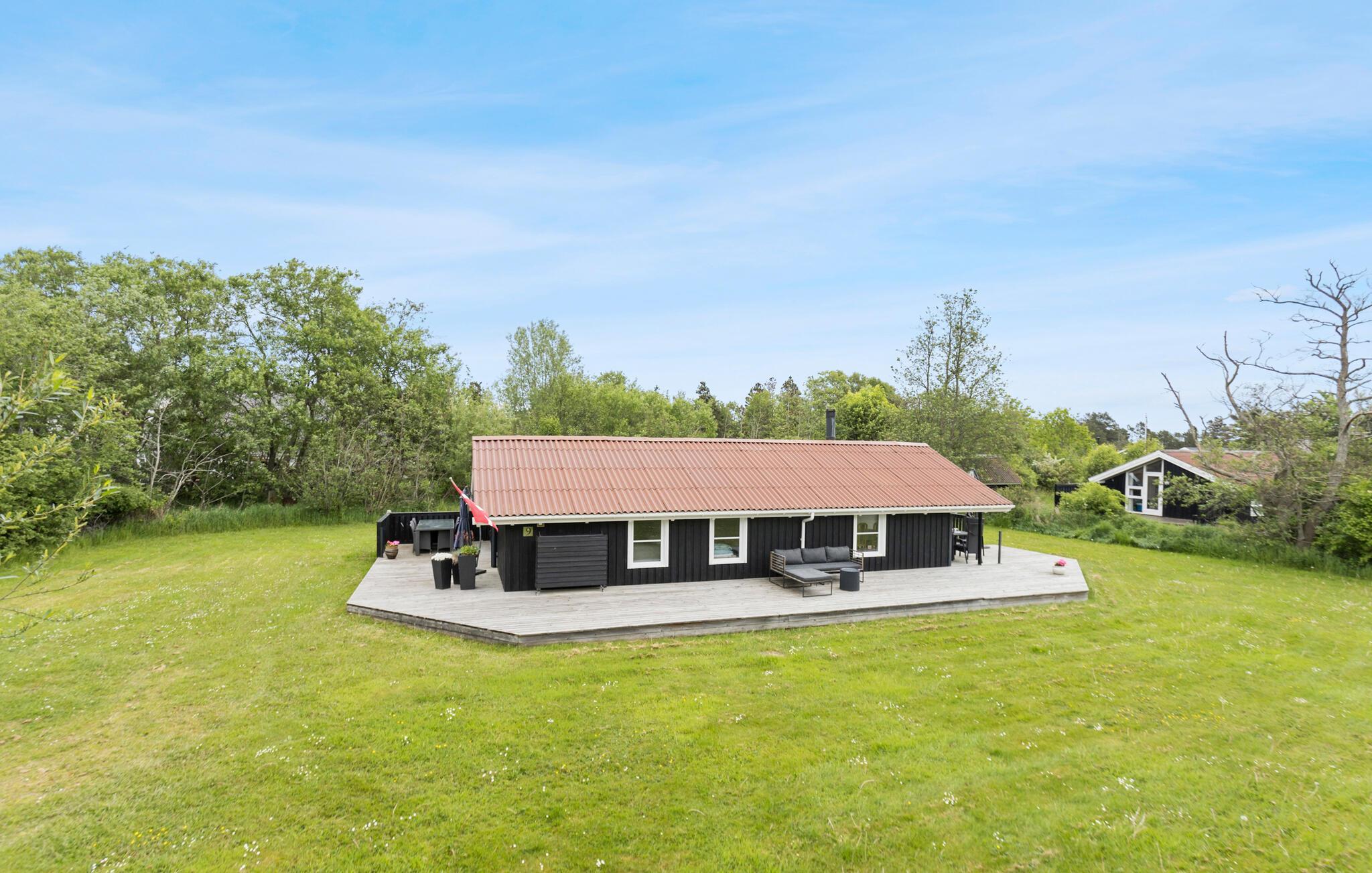 Hyggeligt træhus i Bratten med terrasse, brændeovn og tæt på Kattegats badestrand.