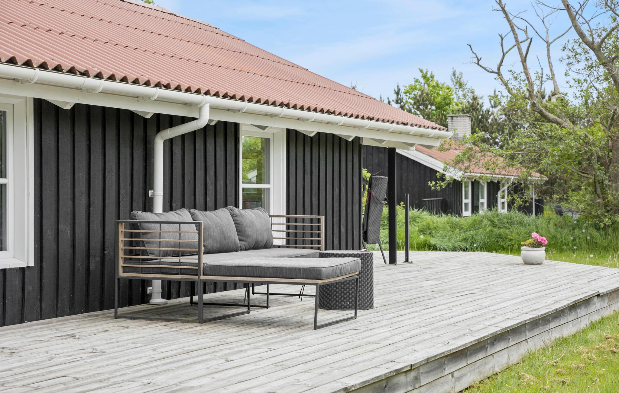 På de varme dage kan I nyde alle dagens måltider i det fri på den skønne terrasse, der løber om flere sider af huset, så I kan finde sol, skygge og læ efter behov. Der er masser af plads i haven, som børnene kan boltre sig på, og ud på eftermiddagen kan I fyre op i grillen, tilberede nogle saftige bøffer og nyde dem med et godt glas vin under aftensolen.