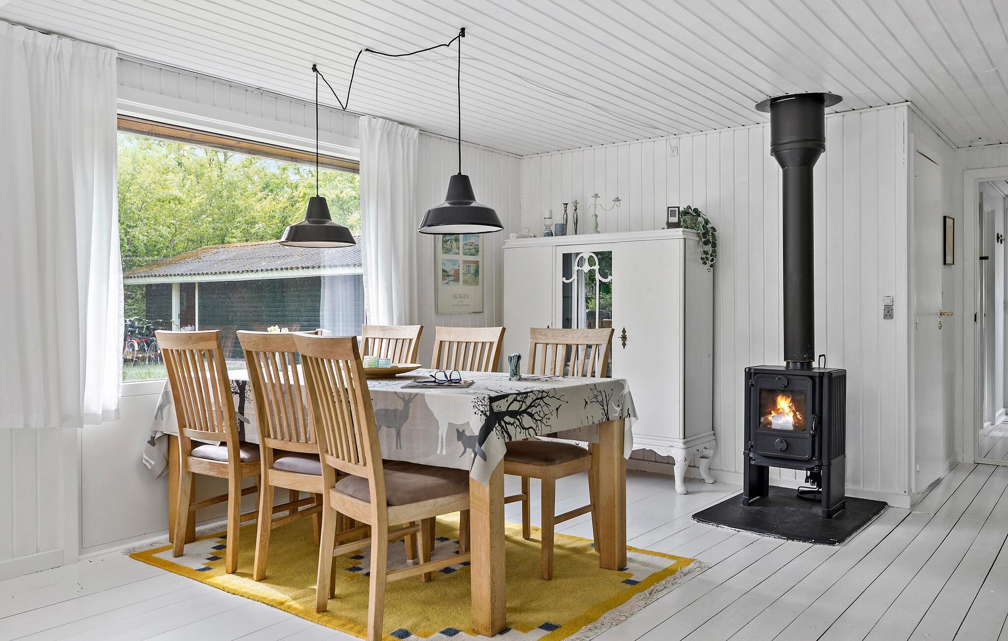 Velkommen til dette familievenlige hus, der ligger en behagelig gåtur fra Bratten Strand og danner en idyllisk ramme om årets familieferie. Huset er pænt indrettet med lyse træpaneler, åbent boligkoncept og fine detaljer i udsmykningen, der giver det indre et hjemligt udtryk og gør det nemt at slappe af med det samme, I ankommer. Hvis vejret viser tænder, kan I fyre op i brændeovnen og nyde dens varme knitren til madlavningen i det veludstyrede køkken og til en hyggelig filmaften i sofahjørnet til sent.
