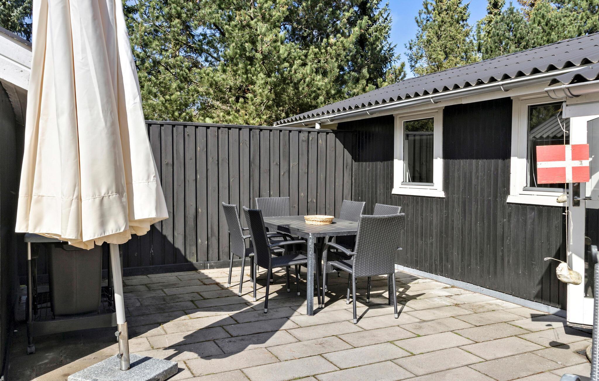 På de varme dage kan I rykke hyggen ud på terrassen, der er indhegnet og føles dejlig privat. Her kan de voksne tage den lidt med ro med en kop kaffe, en god bog eller et krydsord, mens børnene spiller bold eller gynger i haven.