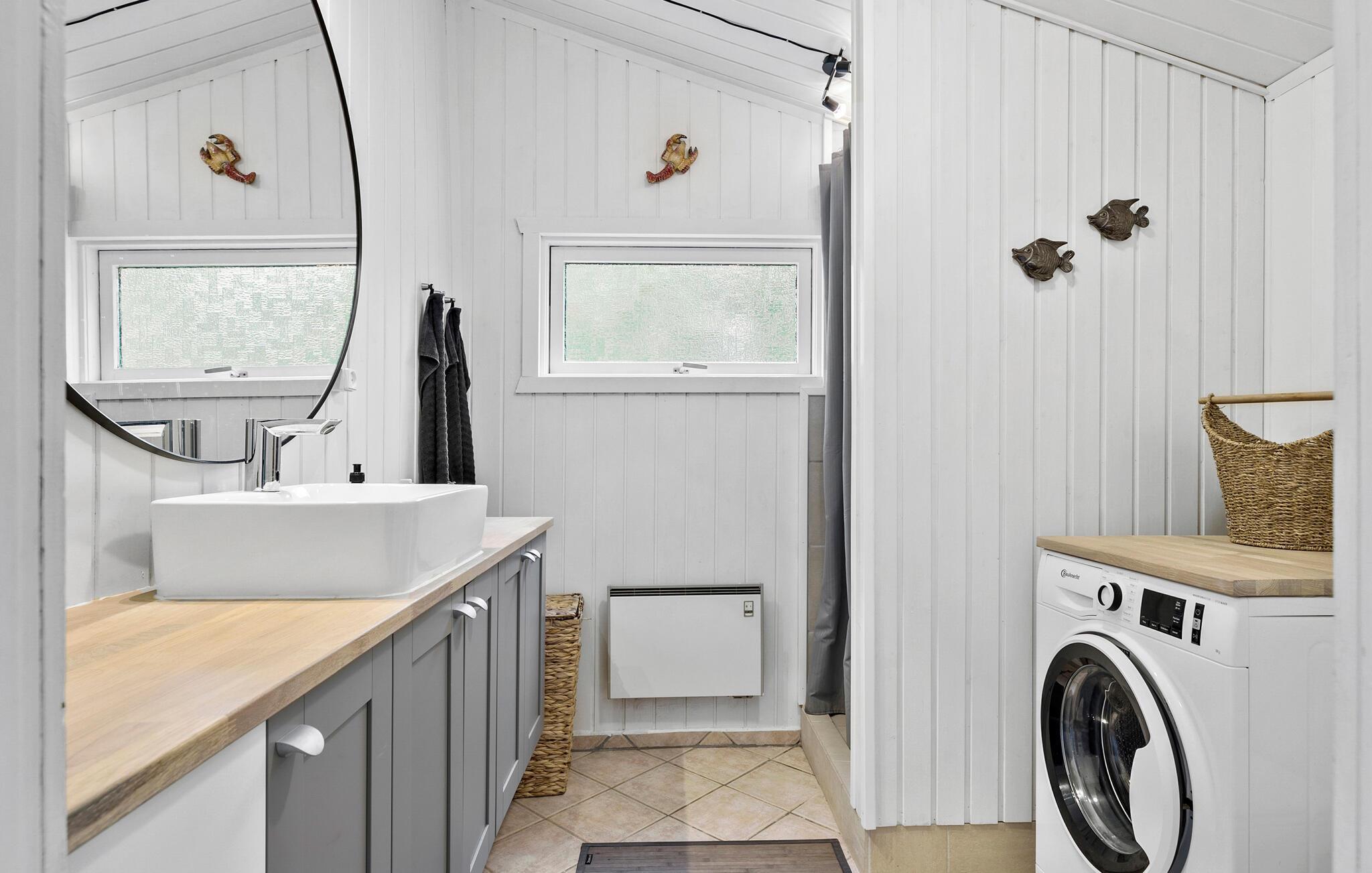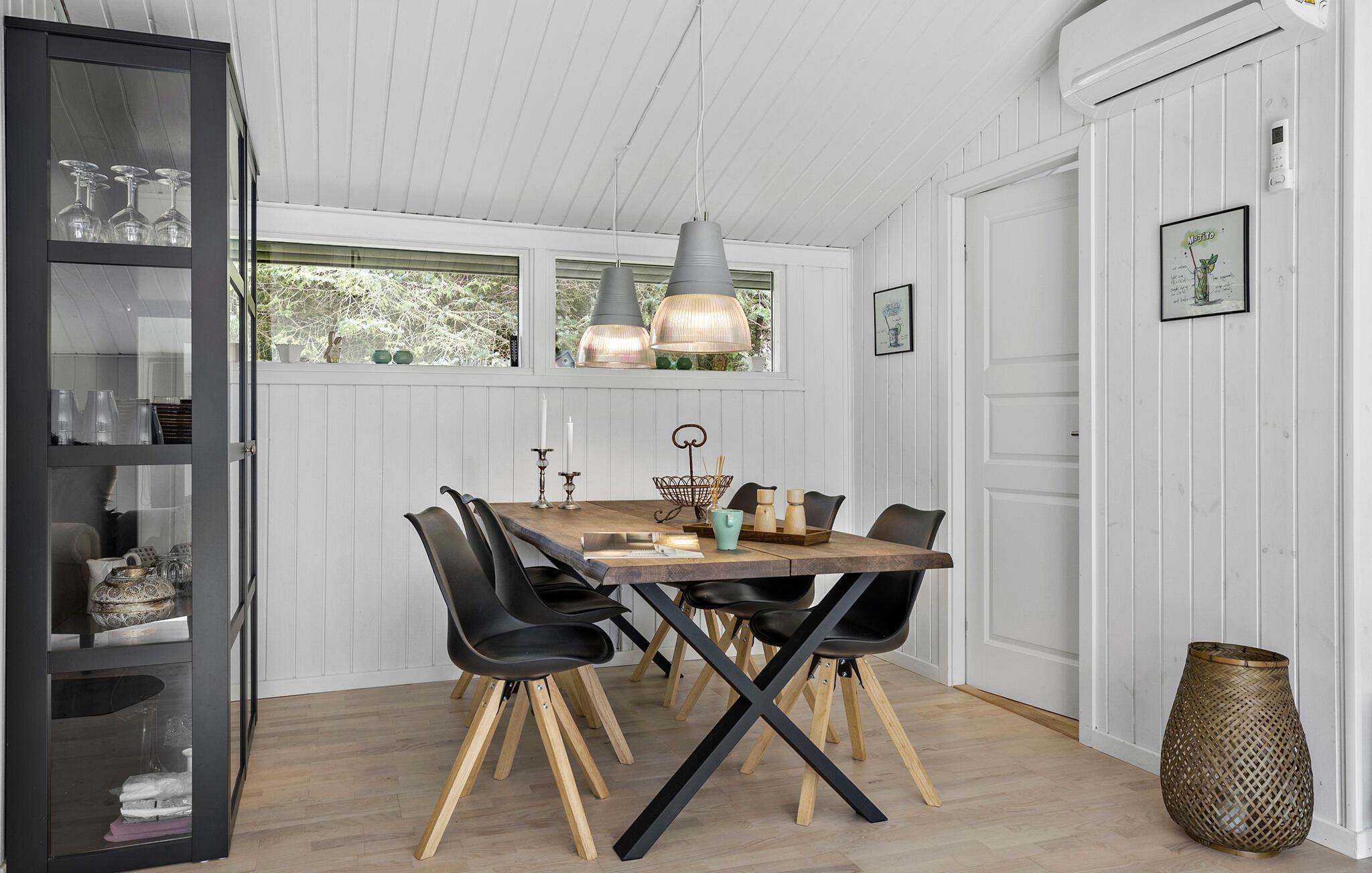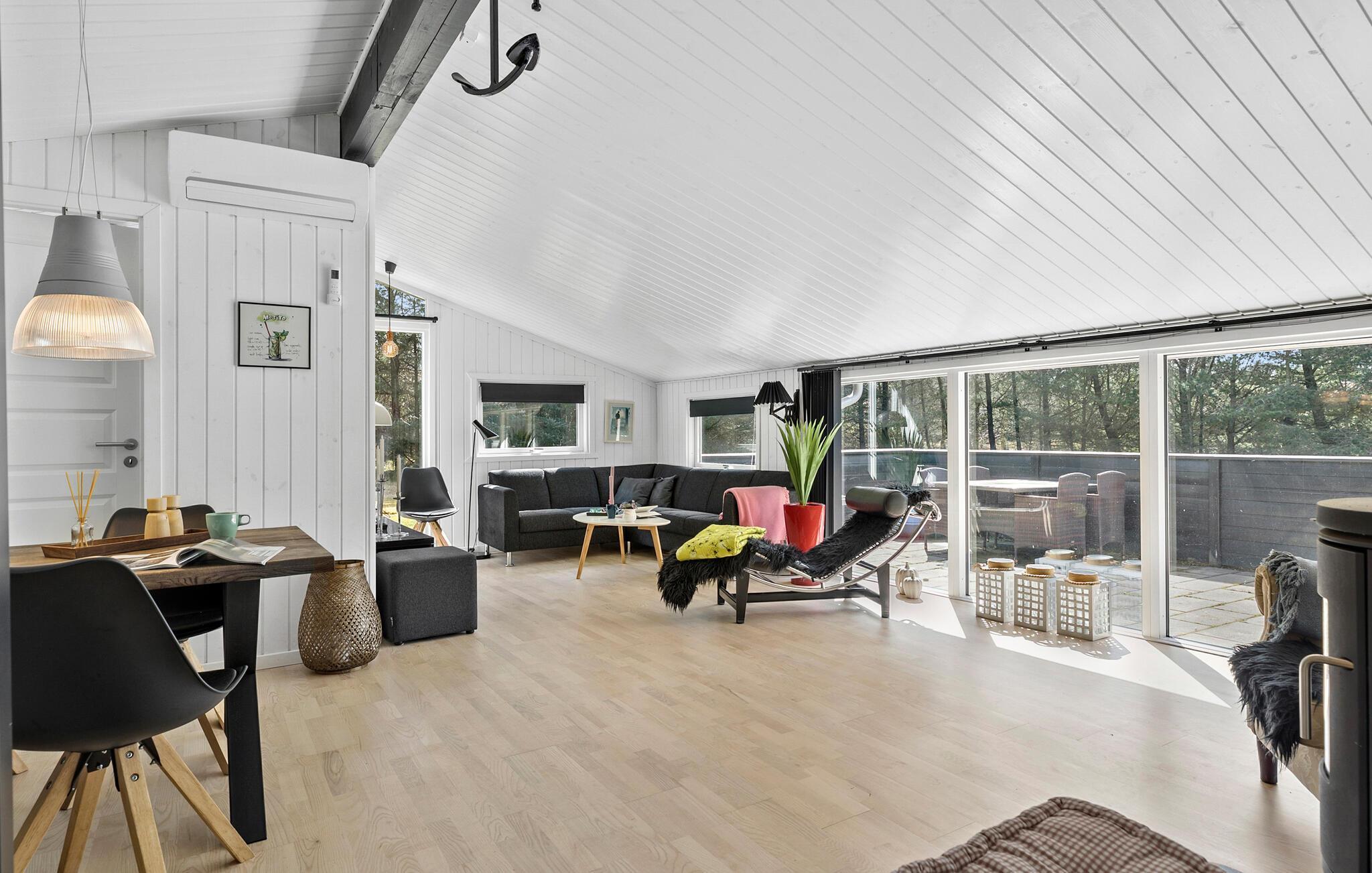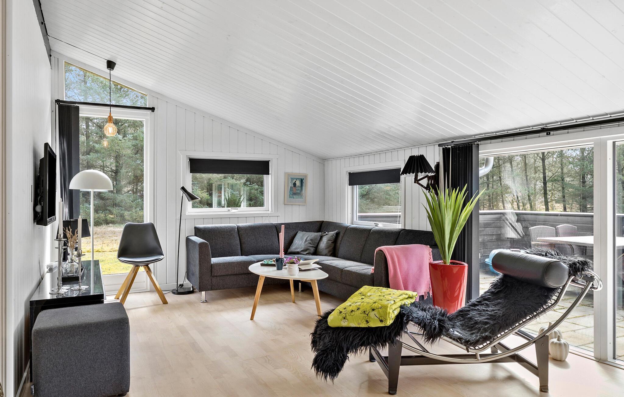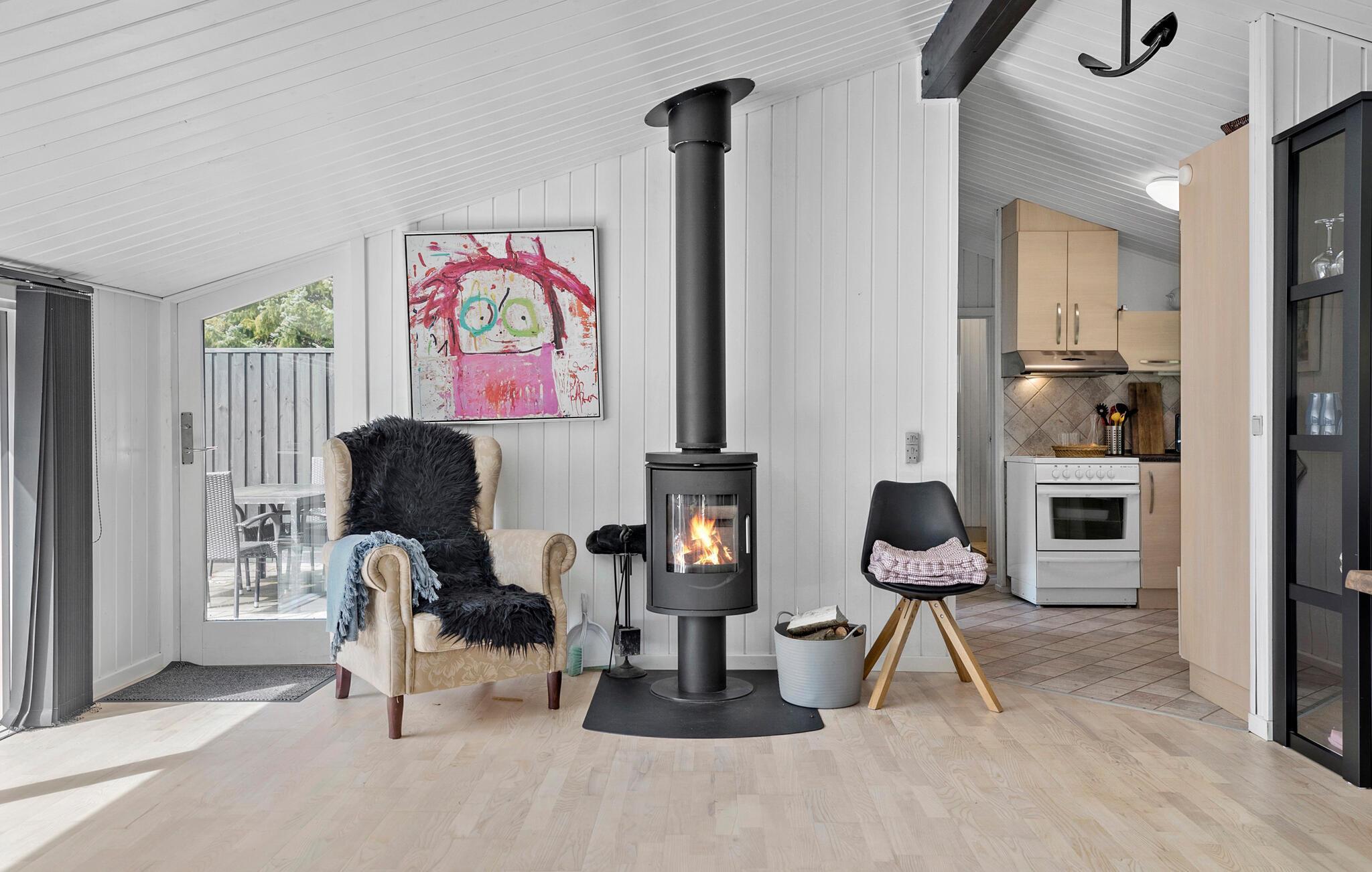 Masser af sollys, en stilsikker indretning med gode, behagelige møbler. Det er, hvad der venter jer i dette moderne træhus ved Bratten Strand. Husets hjerte er den åbne stue, der har højt til loftet og gulv-til-loft-vinduer, der giver et lyst og luftigt udtryk og udsigt til terrassen. Tænd op i brændeovnen på de lidt køligere dage og nyd dens varme knitren, der danner et dejligt lydtapet til en hyggelig brætspils- eller filmaften i sofaen