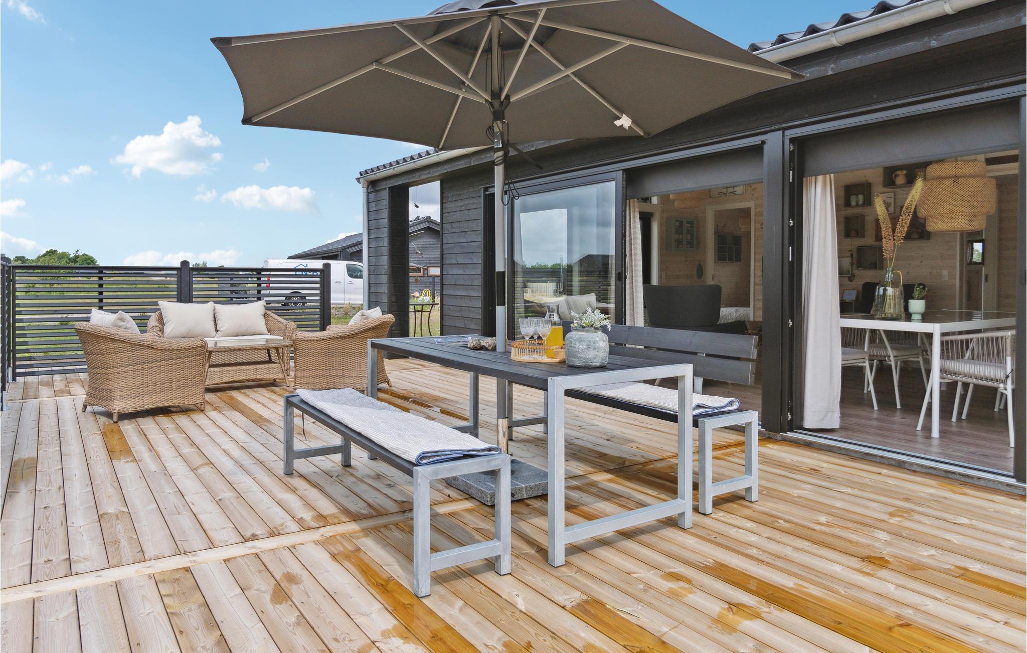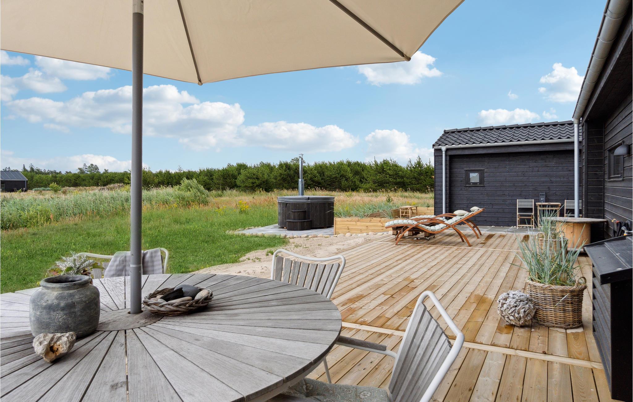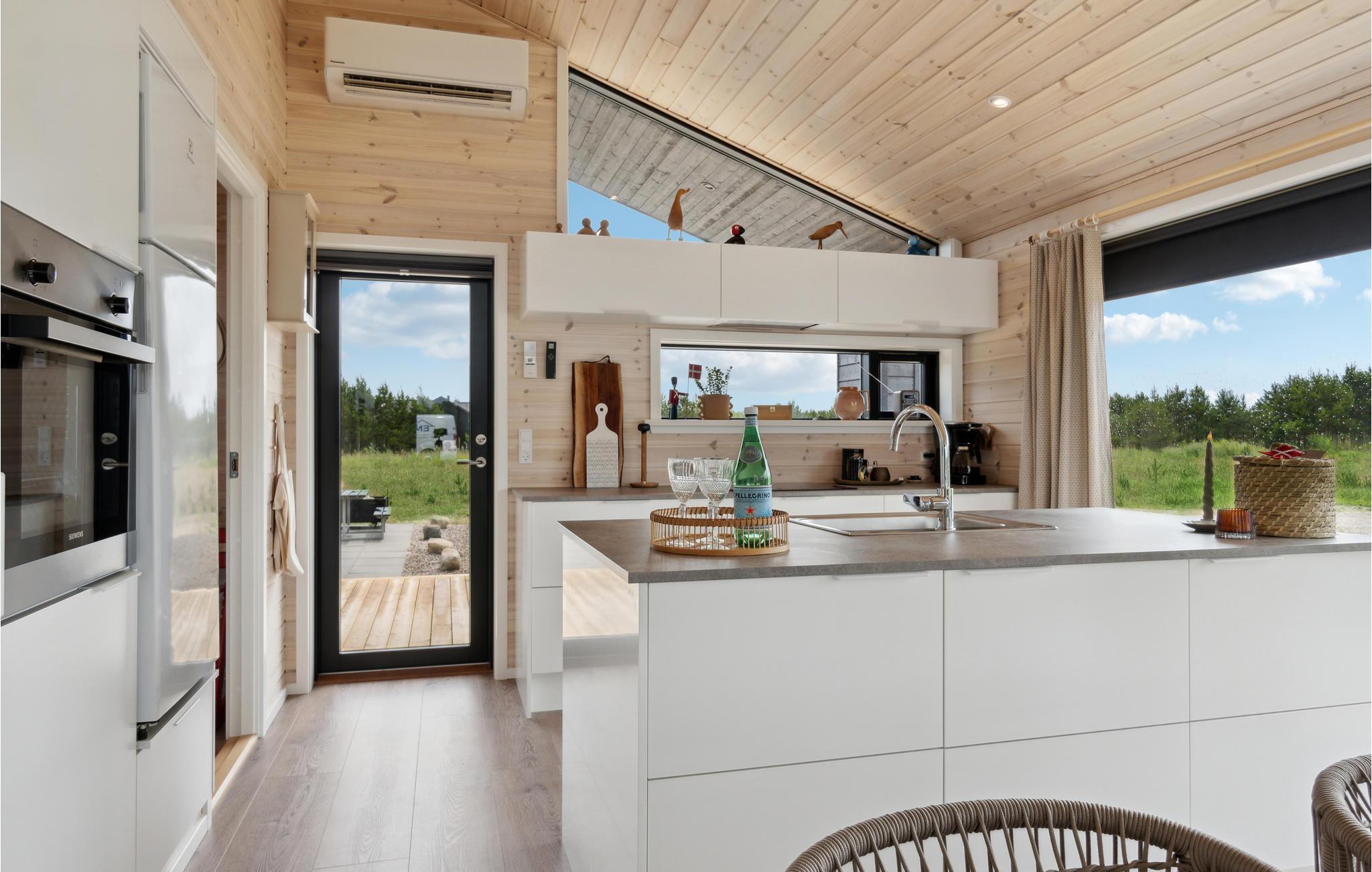 I dette komfortable feriehus beliggende i et idyllisk sommerhusområde med sø på grunden venter ren råhygge! Her kan I endelig koble af og tilbringe ægte kvalitetstid med dem, I holder af. Husets byggestil med høje lofter tillader en hyggelig hems, som jeres børn helt sikkert vil synes om. Atmosfæren er moderne og lys, takket være de fantastiske panoramavinduer, de lyse trægulve og træpaneler samt den smarte belysning. Lav puslespil med børnene ved spisebordet eller deltag i børnenes sjove sovehule-byggeri på hemsen. Her er der hjemligt og rart at være, ikke kun indenfor, men også udenfor på den store terrasse og i den private have, hvor I også kan lave et stemningsfuldt lejrbål. Haven er et paradis for store og små, for her kan børnene gynge og hoppe, og hele familien kan spille volleyball. Med en udendørs bruser og et gæstetoilet i annekset behøver I ikke at gå inden for hele tiden, og strandsandet kan skylles af. Terrassen indbyder til snacks, kølige drinks, solbadning og afslapning i vildmarksbadet. Forfrisk jer i skønne Kattegat sammen med børnene. Der er desuden en kørestolsrampe ned ad klitterne til badebroen.