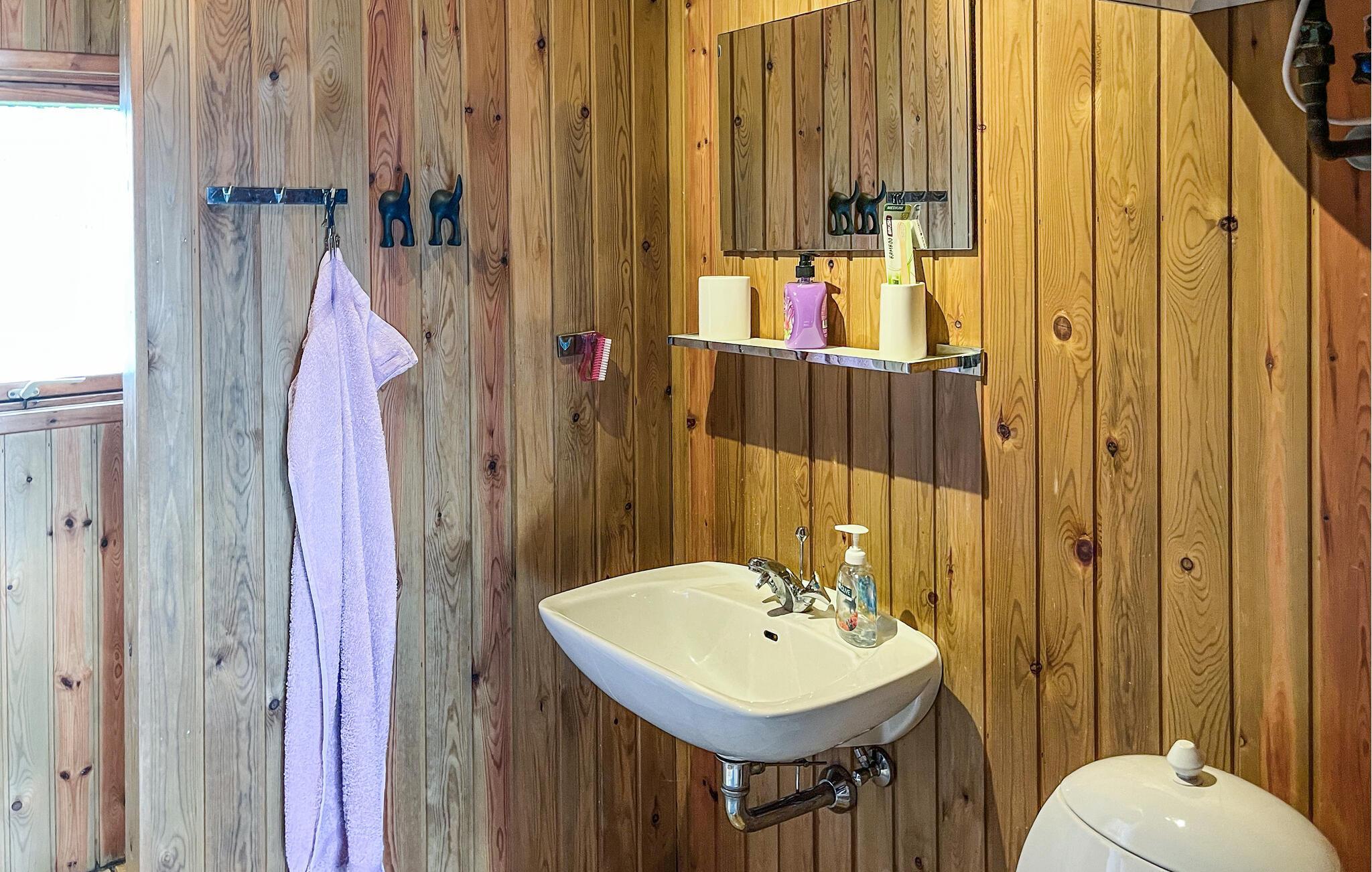 Tilbring en afslappende ferie i dette klassiske sommerhus, som med sin naturnære beliggenhed og varme træindretning skaber en særlig hyggelig atmosfære. Indenfor venter jer en indbydende bolig med rustik charme. Sæt jer godt til rette i de behagelige lænestole eller på hjørnesofaen, læs en bog, eller se en film. De træbeklædte vægge giver rummet en varm og venlig stemning. Det åbne køkken er funktionelt indrettet og ligger i forbindelse med spiseområdet med et stort bord, hvor I kan nyde jeres måltider sammen.
